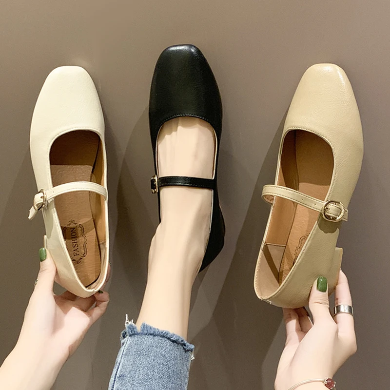Туфли женские весенние на плоской подошве, с ремешком на щиколотке