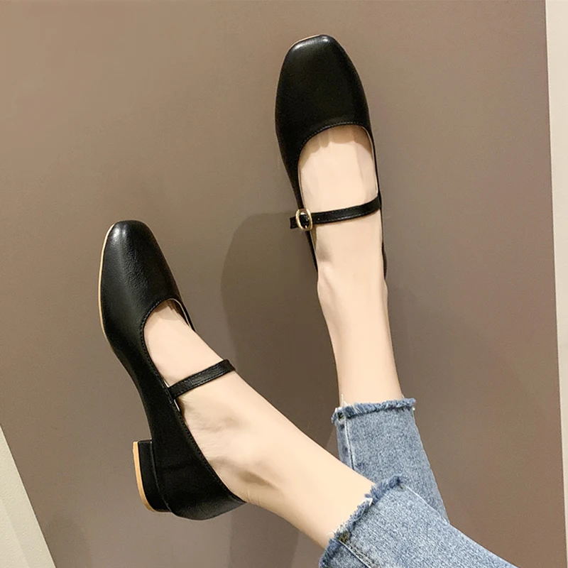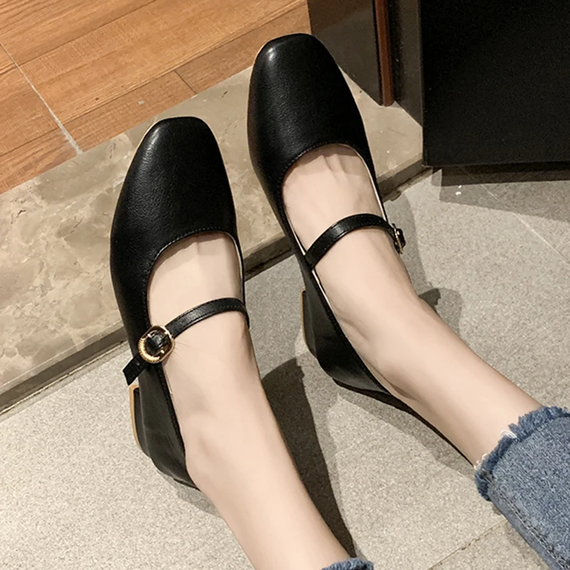 Сезон весна-осень; Женские туфли в стиле Мэри Джейн; Туфли квадратный носок, низкий каблук, Туфли под платье черного цвета в стиле ретро; Женская обувь без застежки; Водонепроницаемые мокасины; zapatos mujer 9266C