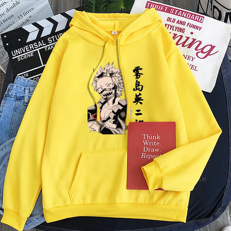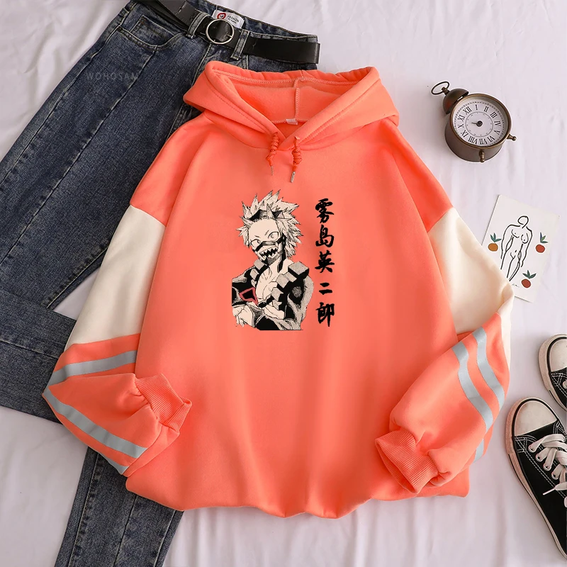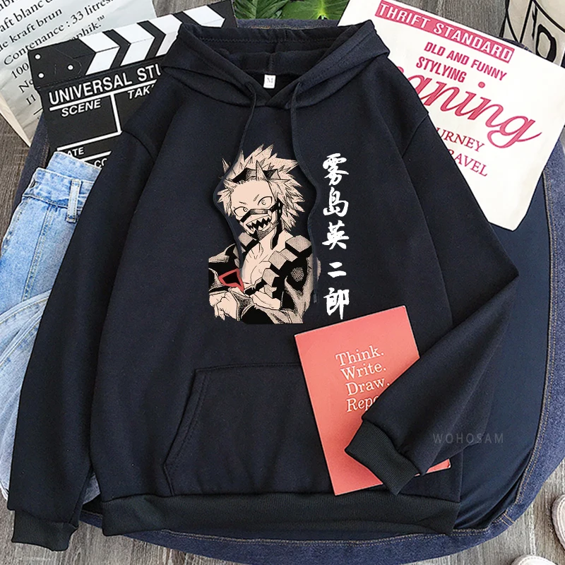 Модные толстовки с рисунком манги, аниме Моя геройская Академия, Kirishima Eijiro, мужские Модные теплые толстовки оверсайз с длинным рукавом и пэчворком