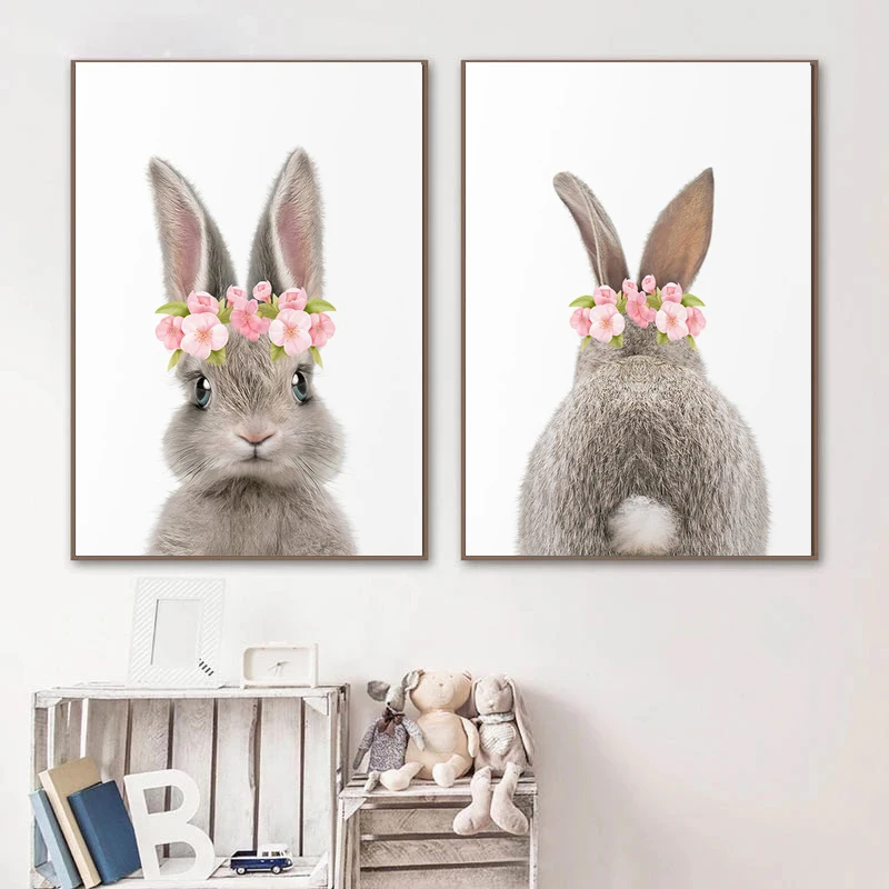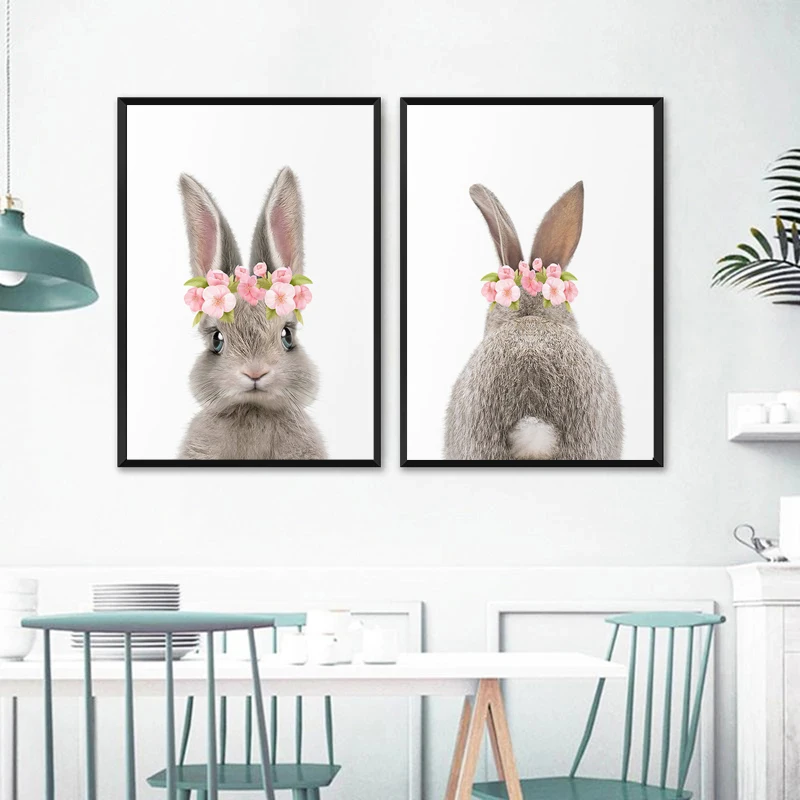 Кролик, Кролик, хвост, цветок, животное, Скандинавская настенная Картина на холсте, постеры и принты для детской комнаты, настенные картины, декор для детской комнаты