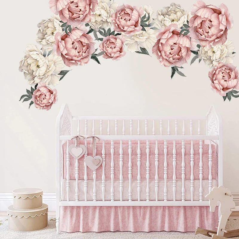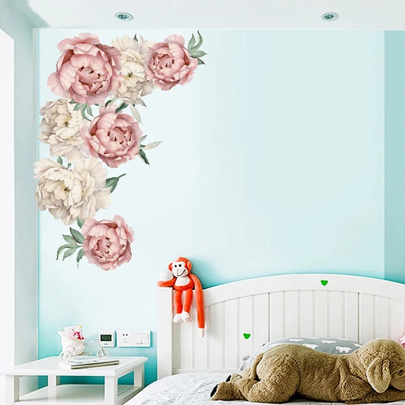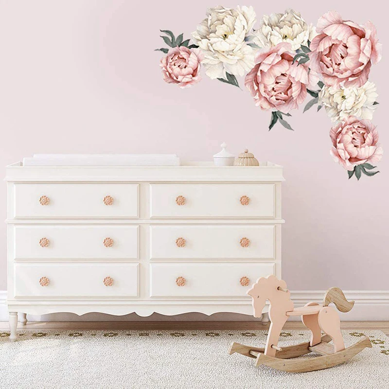 BRUP ручная роспись розового и белого цвета и украшением в виде цветка наклейки на стену для Гостиная Спальня Наклейки на стены ПВХ декоративные наклейки для дома Декор