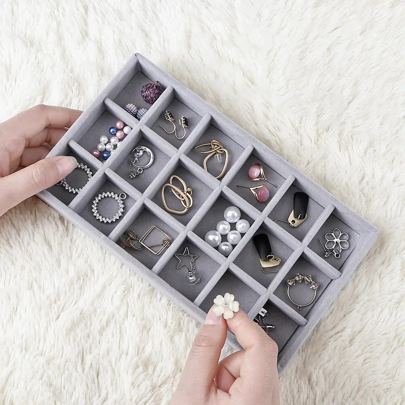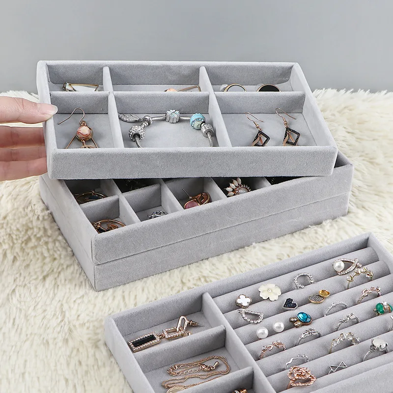 Поднос для хранения ювелирных изделий, вельветовый, серый, для ожер...