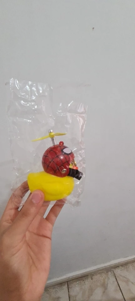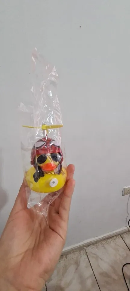 Особенности: он издаст звук при защемлении, материал мягкий, безопасный и прочный, качество утки хорошее, сырье безопасно, и оно не вредит здоровью человека, С шлемом, винтом, солнцезащитными очками, металлической цепочкой для ожерелья, супер круто. Отлично подходит для надевания на автомобильный капот, зеркало заднего вида и т. д. также можно надеть детский шлем, когда они катаются на роликах, это действительно восхитительно.