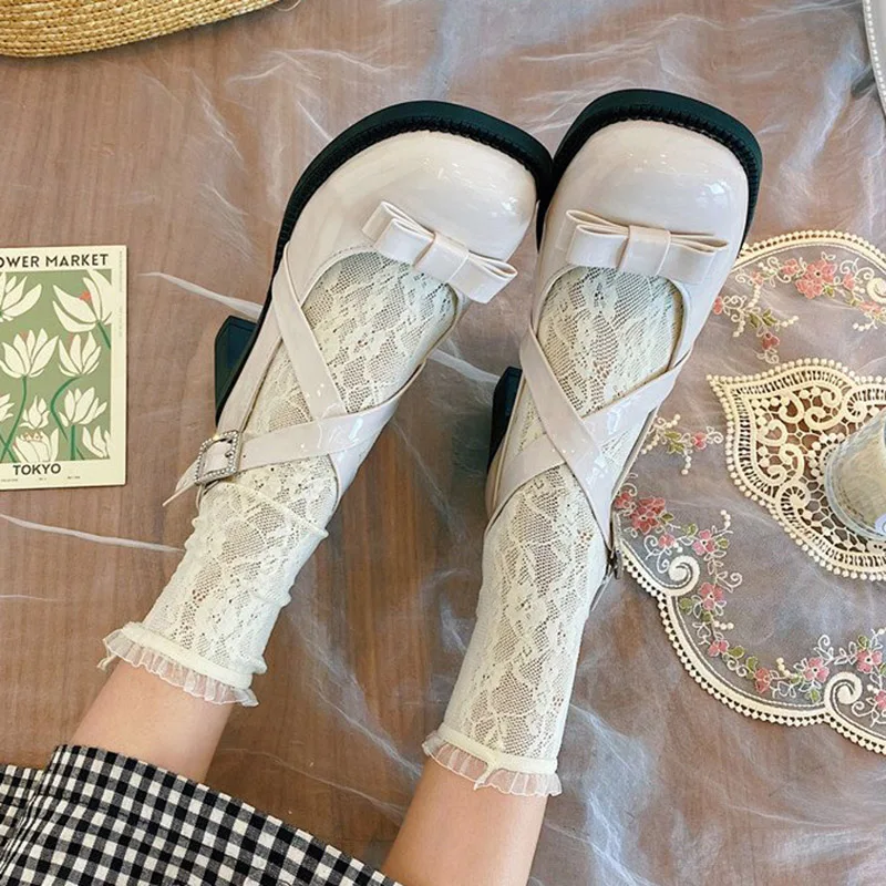 Туфли Лолиты; Туфли Мэри Джейн с бантом; Женские кожаные туфли на п...
