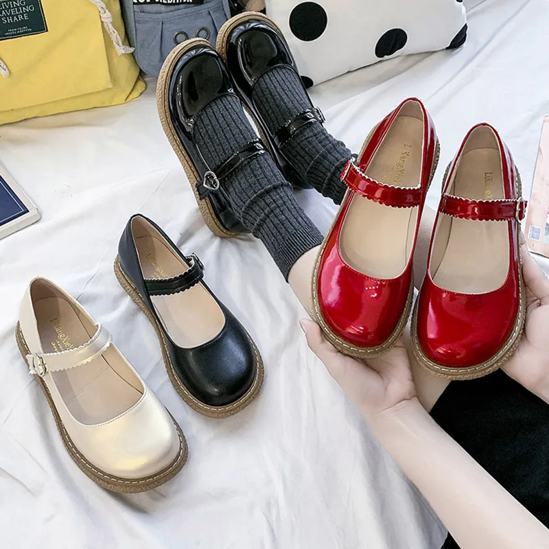 Весенние женские туфли мэри джейн на плоской подошве; Туфли Лолиты ...