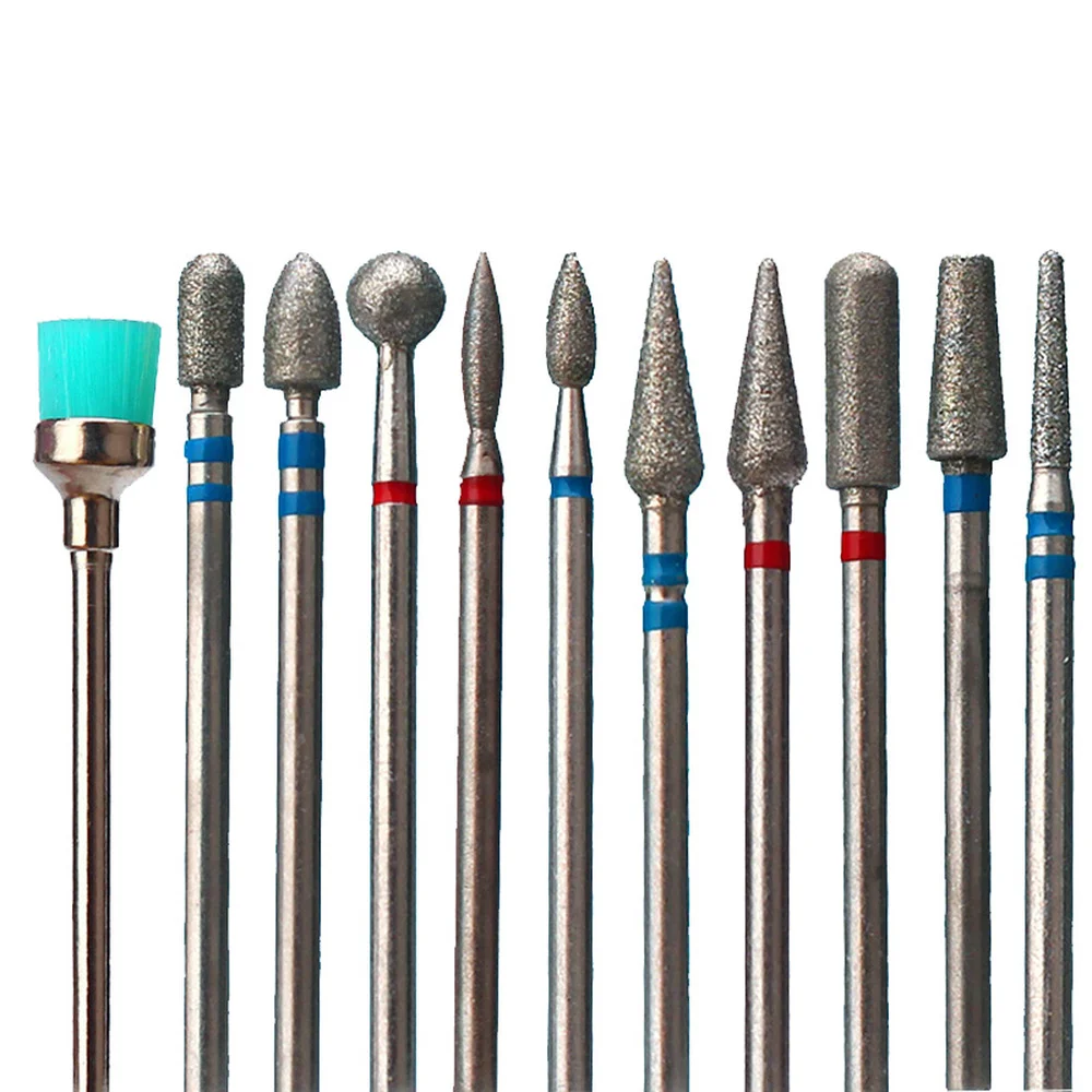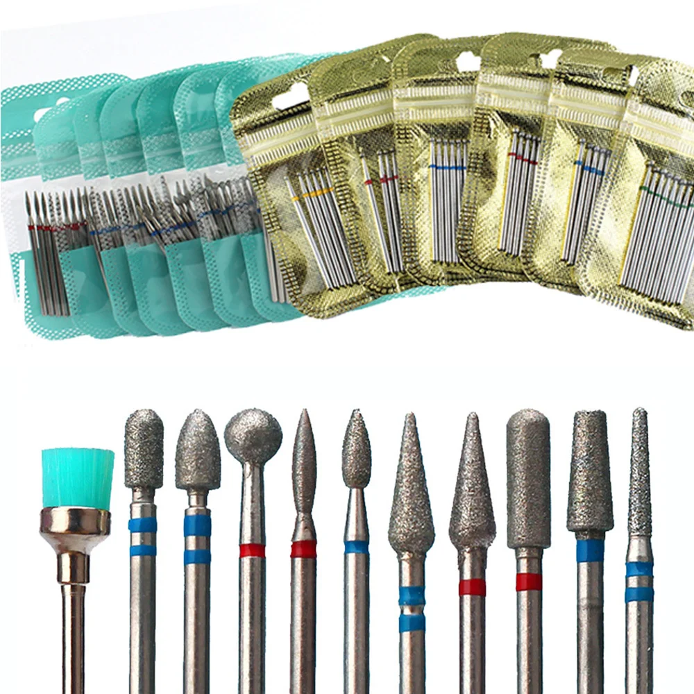 10 шт.компл. алмазные сверла для маникюра и педикюра, Фрезерные фрезы, удаление лака для ногтей, аксессуары для вращающихся инструментов