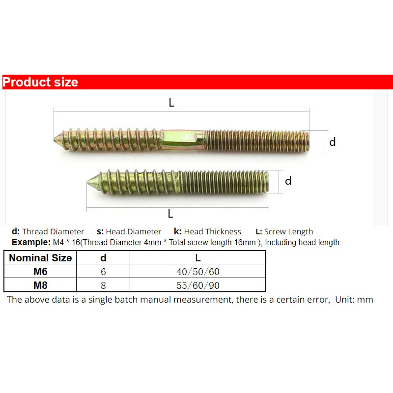 GuHua двухконцевые саморезы с Острым Хвостом с двойной головкой резьбовые удлинители мебельные соединители болотный винт M6M8 5 шт.
