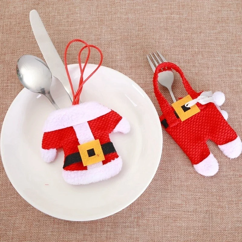 Package Included1 * Christmas knife and fork sets (1pc clothing + 1pc pants)