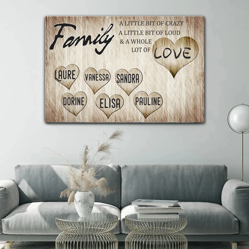 Семья Знак логотипа названия Семья немного Сумасшедший печати Wall Art Холст Картина персонализированный подарок для Гостиная домашний декор