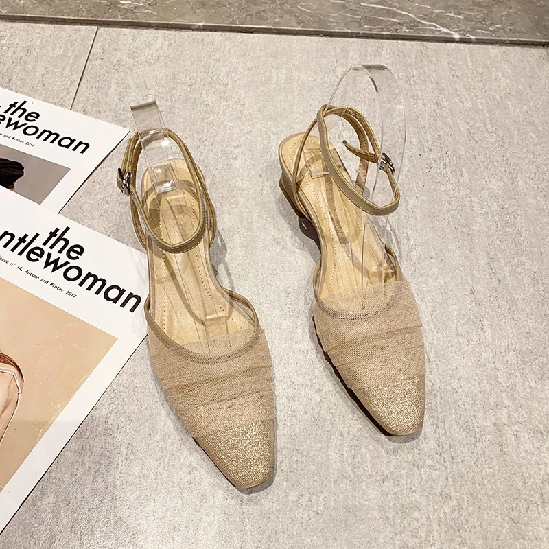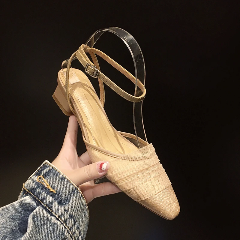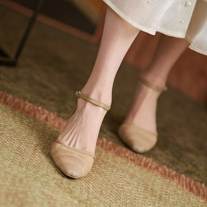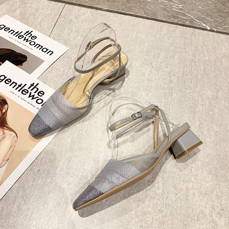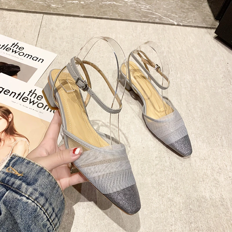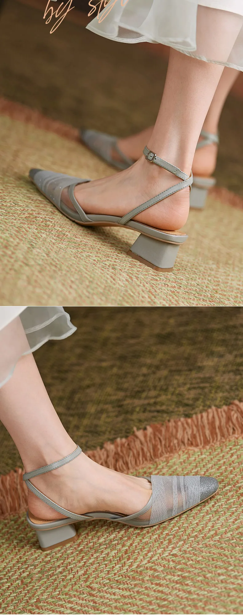 Женские босоножки с острым носком, сетчатые туфли с ремешком на щиколотке и кружевом, классические туфли на среднем каблуке, 9208L, лето 2021