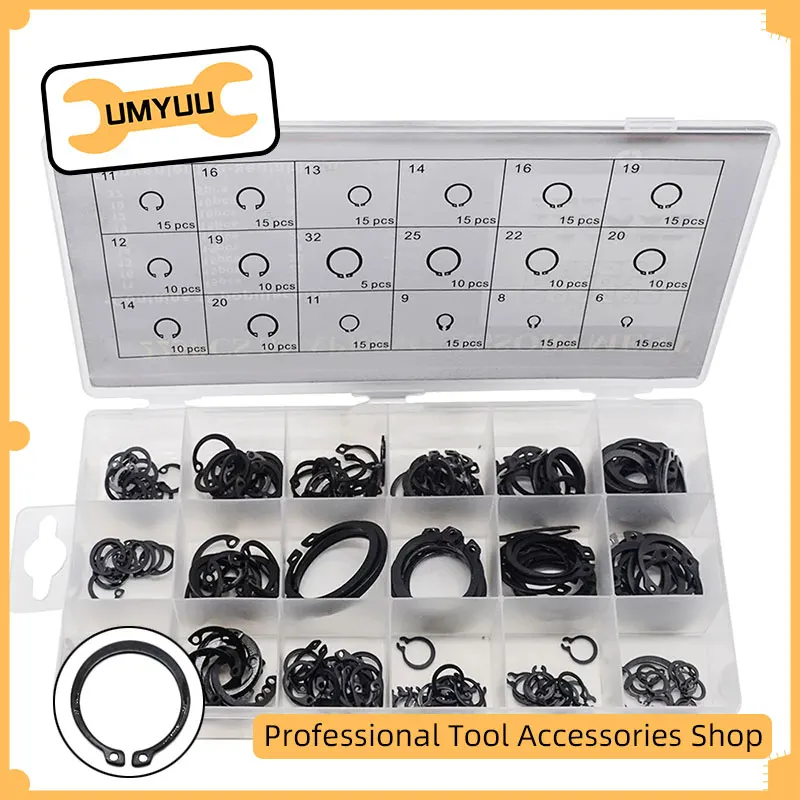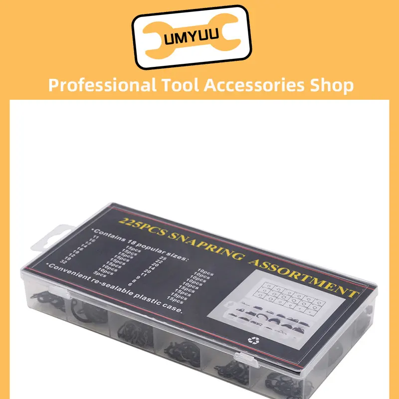 UMYUU 225 шт. зажим E-type Cir, защелкивающееся упорное кольцо, стопорное кольцо, набор внешних ассортиментов, Набор отверстий, воротник вала, шайба