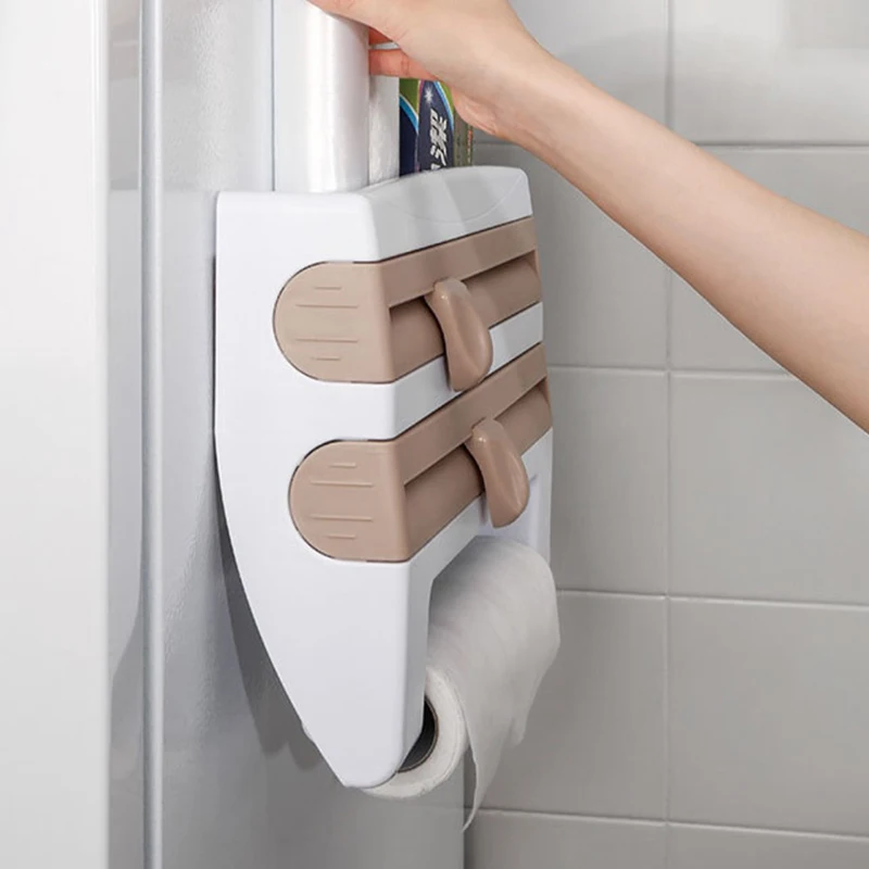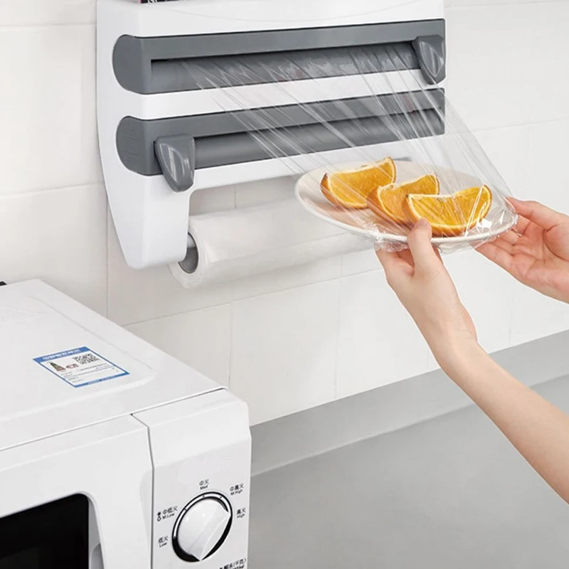 Особенности:1. Настенный Держатель для кухонного рулона с пленкой, стойкой для хранения и фольга. Все аккуратно хранится в одном месте2. Каждый диспенсер имеет скользящий резак, который может быстро и легко распределять и обрезать бумагу.3. Эргономичный дизайн, очень удобный в использовании. Элегантные, безопасные и практичные современные кухонные принадлежности.4. Простота установки: может быть установлен на стенах, окнах и холодильниках, кухонных шкафах, бумажных полотенцах для хранения, пленке, алюминиевой фольге и небольших бутылках для специй. Экономит много места и сохраняет ваши кухонные принадлежности.5. Безопасность: после резки конец фольги/пленки выступает достаточно далеко от держателя рулона для легкого захвата и возможности безопасно тянуть режущие лезвия за эргономичным резаком.