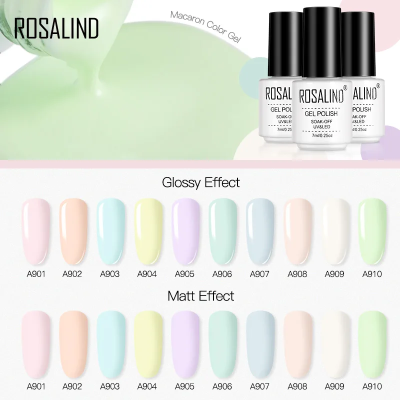 Полуперманентный лак для ногтей ROSALIND Macaron, гель для верхнего и базового покрытия ногтей, УФ-Гель-лак для ногтей, удаляемый замачиванием гель для дизайна ногтей, гибридный лак для маникюра