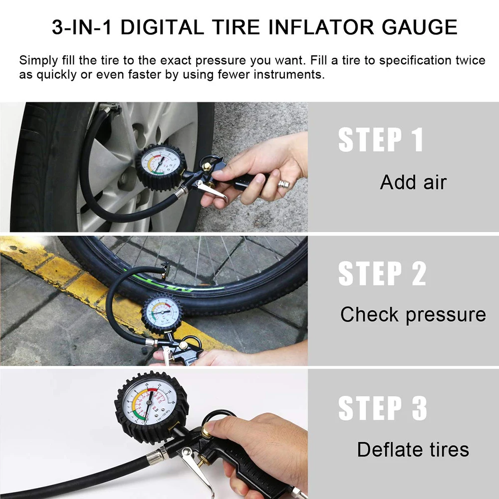 3. Он имеет функции дефляции, надувания и измерения шин для автомобильных шин, а также может быть подключен к воздушному насосу, чтобы выдуть пыль на двигатель транспортного средства и т. Д.
