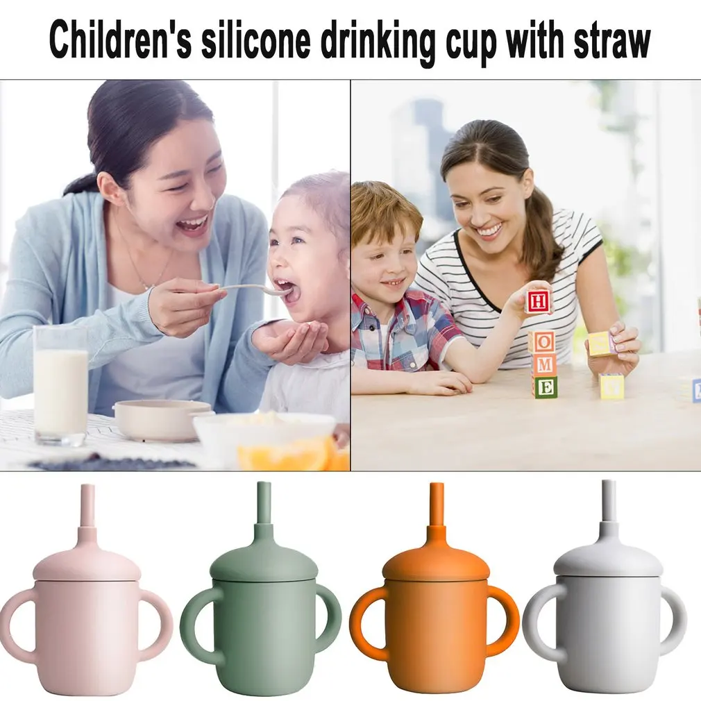 Детская силиконовая чашка, бутылка, водонепроницаемая посуда для напитков, прочная посуда для кормления малышей, детская чашка с крышкой