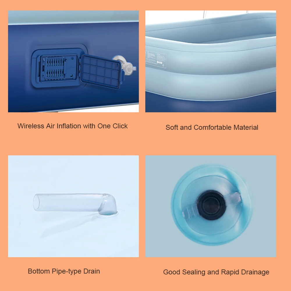 Прочная конструкция обеспечивает лучшую стабильность и безопасность, легко установить up.mo oth поверхность, бесшовное сочетание, обеспечивают лучший опыт.Большое пространство надувного бассейна, подходит для семьи и друзей, чтобы играть в помещении и на открытом воздухе.