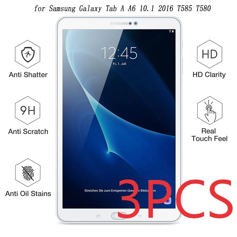 3 шт. защитная пленка из закаленного стекла премиум-класса для SM-T580 Защитная пленка для экрана для Samsung Galaxy Tab A A6 10,1 "2016 T585 защитное стекло с пленочным покрытием