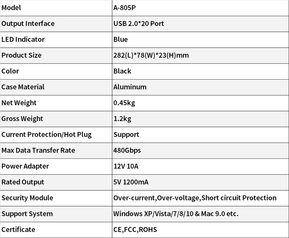 Power Adapter:12V 10A(Include)