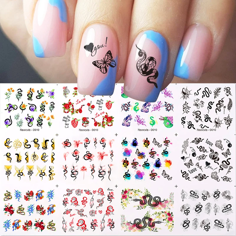 Цветные Волнистые наклейки для ногтей Harunouta, с изображением змеи, эскиз абстрактных сексуальных девушек, декоративные Слайдеры для маникюра