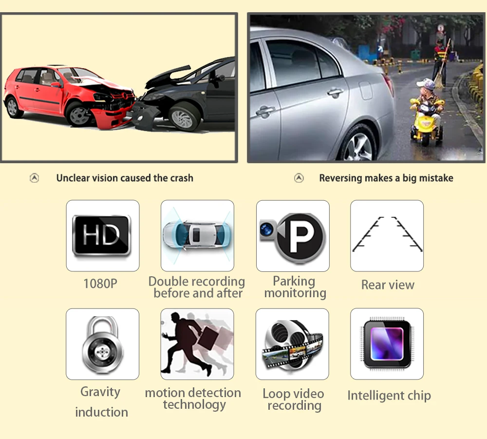 * Предоставляем передние и задние варианты камеры.* Поддержка оригинальной заводской камеры.* 170 истинный угол обзора.* Предварительно записанная ADAS усовершенствованная Предупреждение ющая интеллектуальная система для водителя помогает вам обратить внимание на безопасность вождения.* С широкоугольным объективом 170, который охватывает большое поле зрения, колонку AB в автомобиле можно включить в диапазон съемки, И детали передней машины и дороги с обеих сторон можно увидеть в полном виде.* Специальный автомобиль, Реверсивный становится безопасным и простым