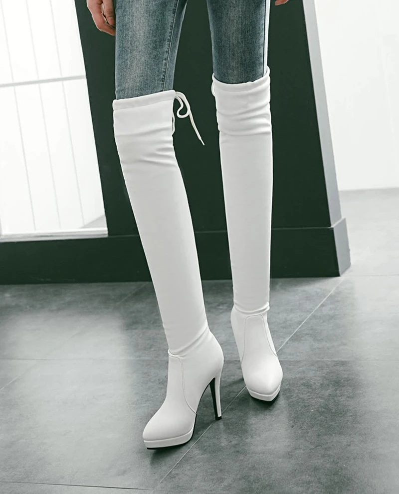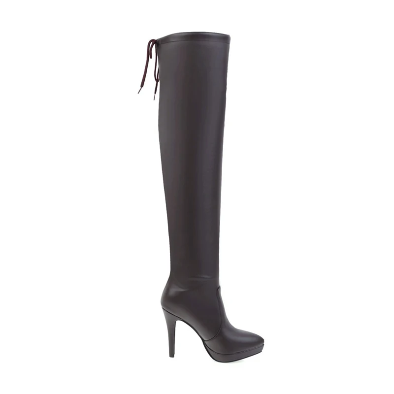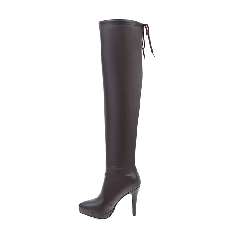 Ботфорты женские на платформе и высоком каблуке, пикантные ботфорты, высокие сапоги, черные ботфорты на осень-зиму