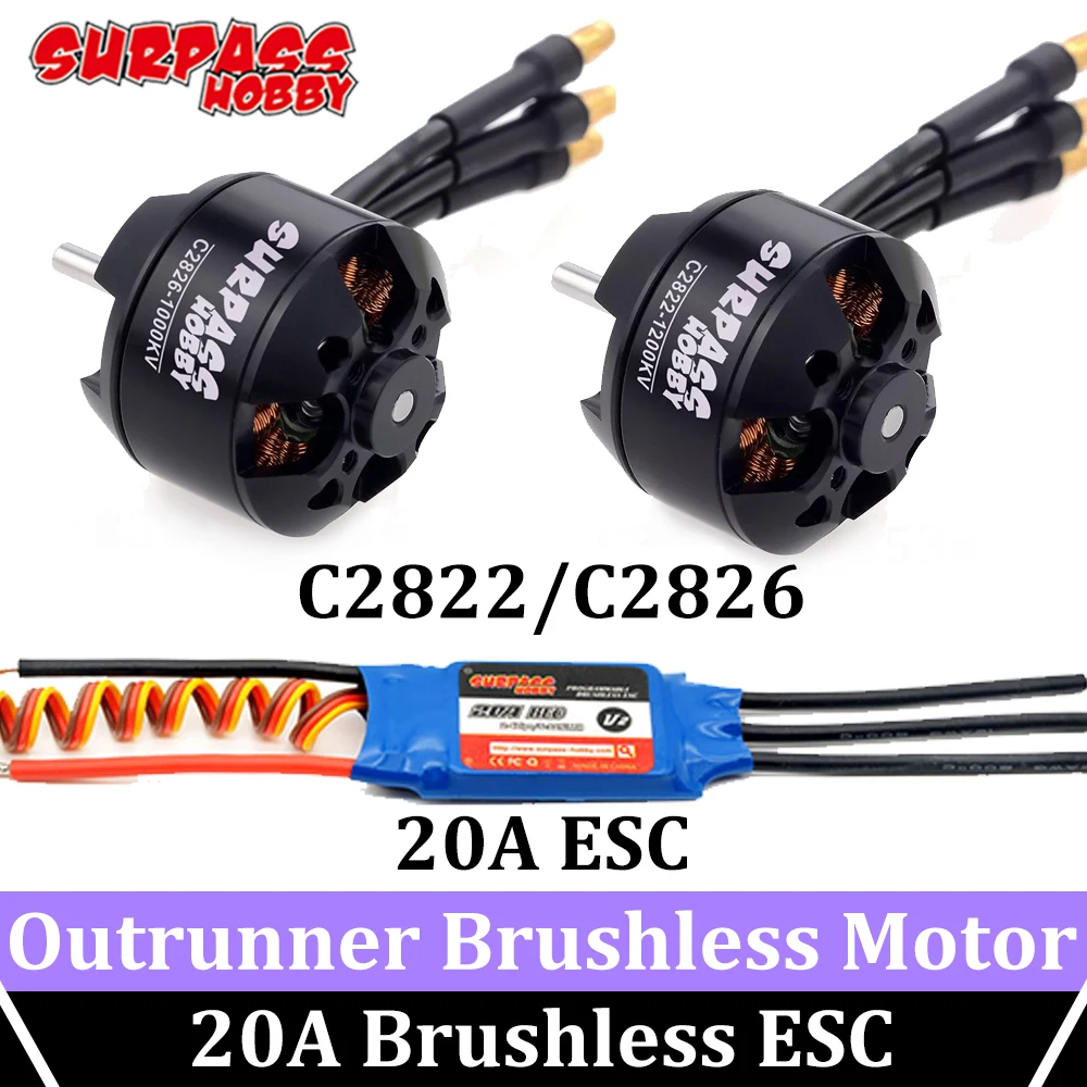 SURPASS HOBBY C2822 C2826 бесщеточный мотор с внешним ротором 14 полюсов 2204 2208 20A бесщеточный ESC Li:2-4S для радиоуправляемого самолета двигатель с неподвижным крылом