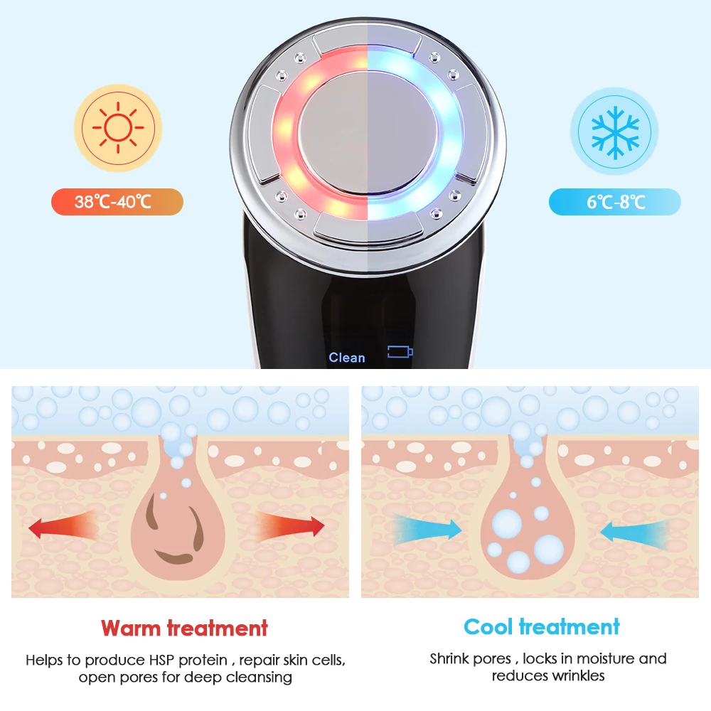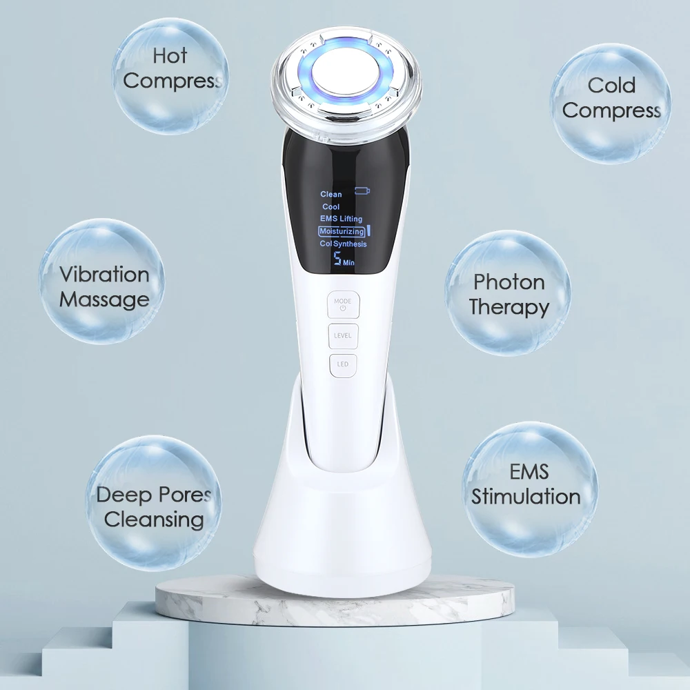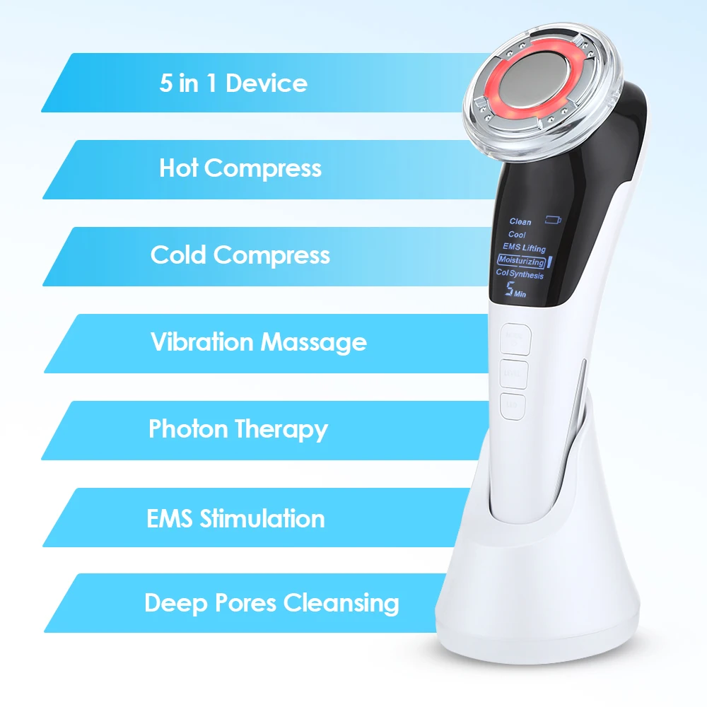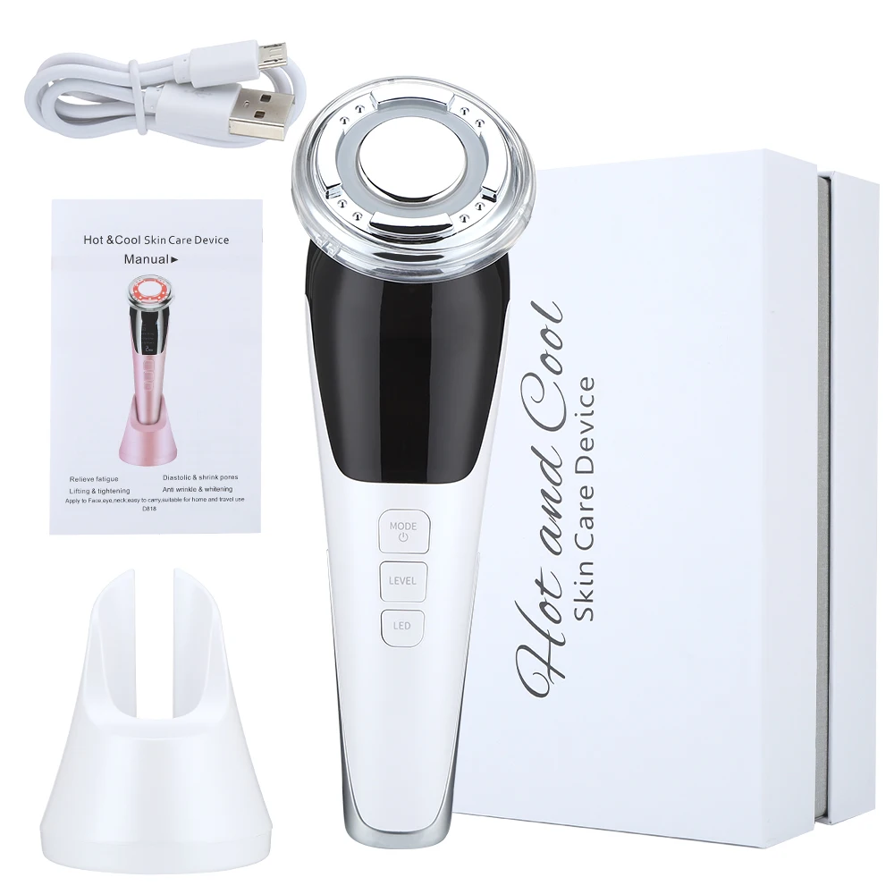 Массажер для лица EMS, ультразвуковая Вибрация светодиодный Светодиодная светильник ка, горячее охлаждение, лечение для кожи, омоложение против старения уход за кожей, красота