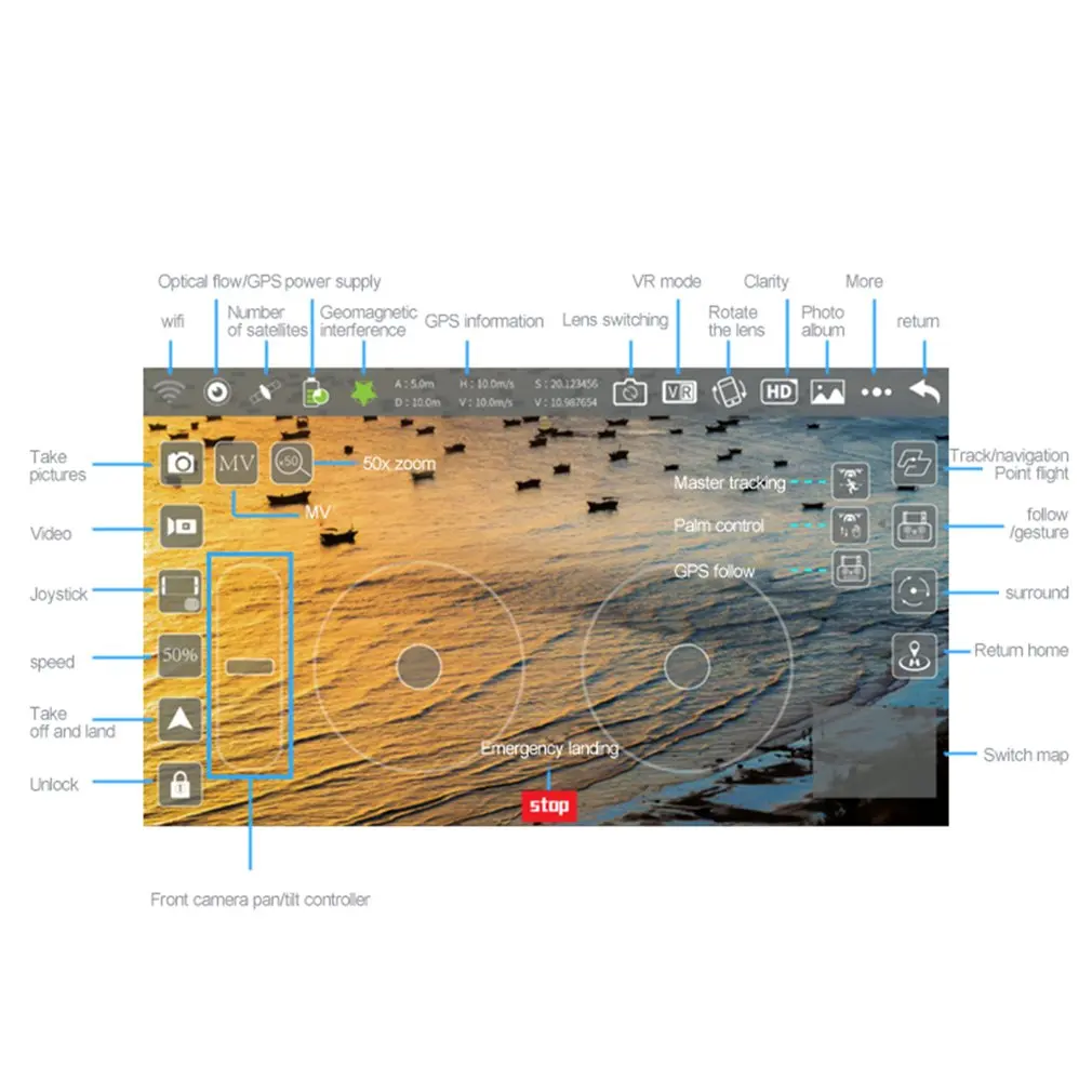 2. Управление одним нажатием кнопки: вы можете управлять самолетом, чтобы взлететь, приземлиться и даже вернуться с расстояния одним щелчком. Когда Дрон вернется, он прибудет в исходное место, откуда он взлетел.