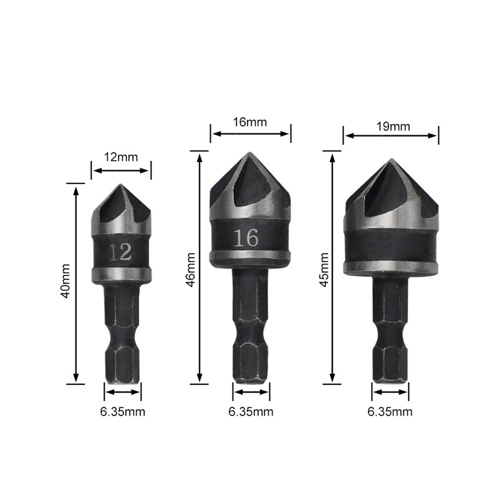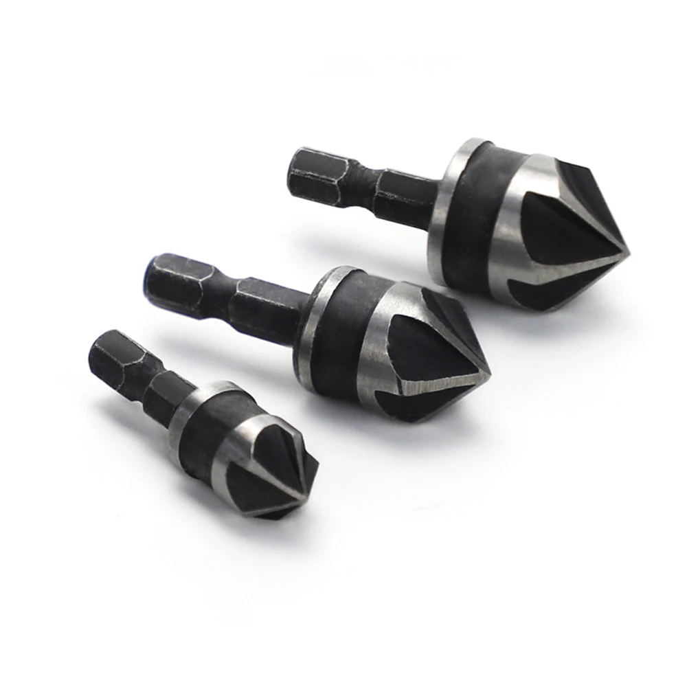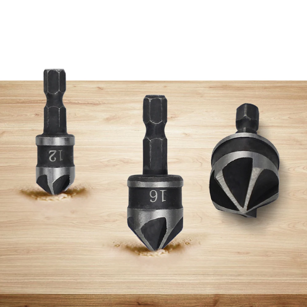 Этот фантастический набор с потайной раковиной отлично подходит для погружения отверстий на 90 градусов в дерево и мягкие металлы для предварительной обработки потайных винтов и фиксаторов.