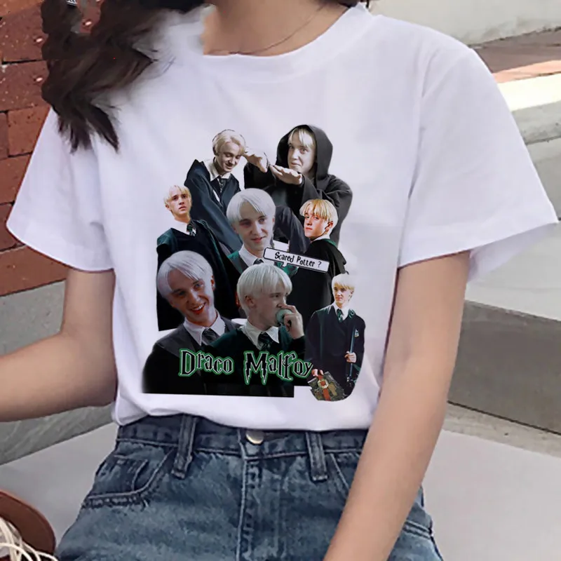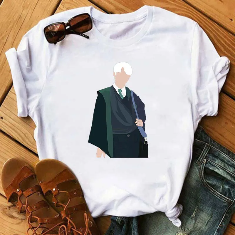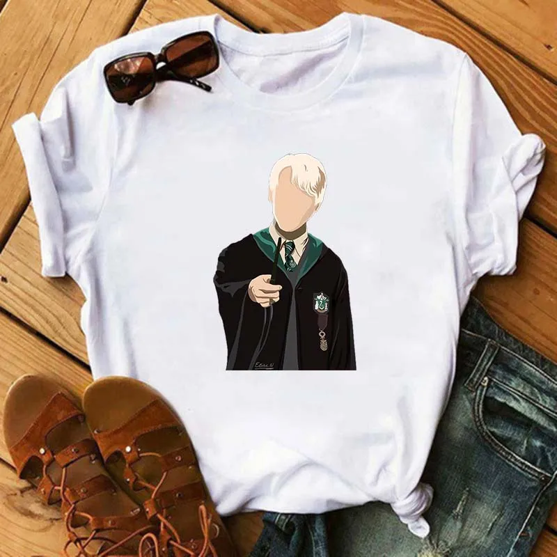 Интересная мультяшная графика Значок Слизерин Драко Малфой футболка для женщин Harajuku Милая для женщин футболка Топы женские футболки