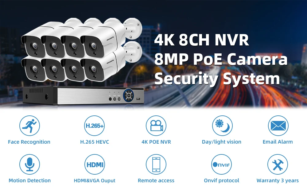 ② POE NVR и POE IP Bullet Camera-H.265 8MP;