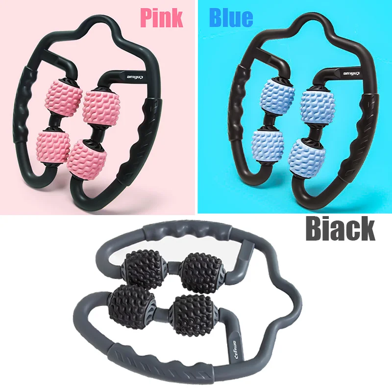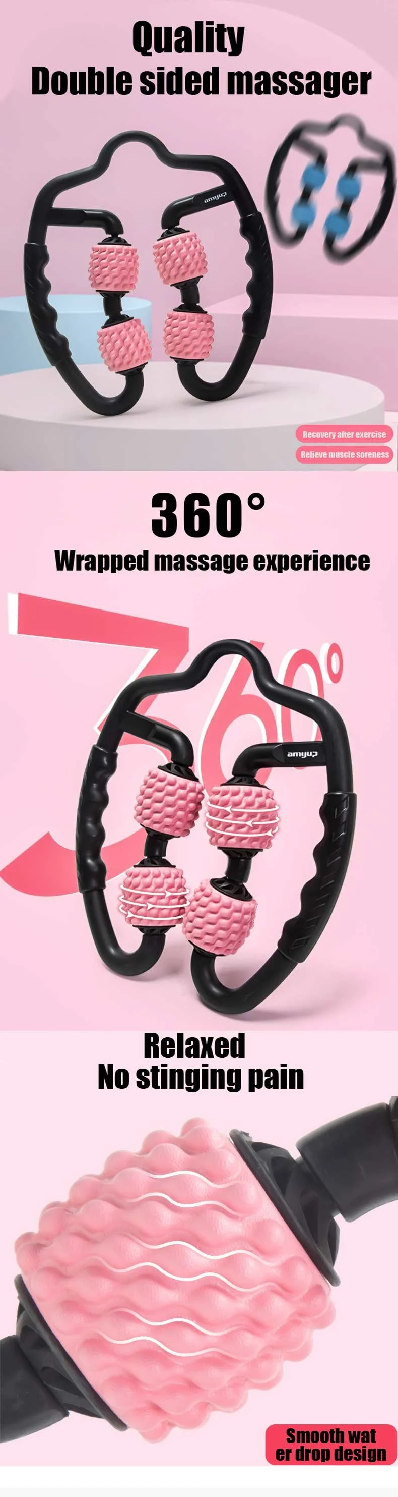 U-образный массажный ролик с триггерами для рук, ног, шеи, мышечной ткани для фитнеса, тренажерного зала, йоги, пилатеса, спорта, 4 колеса
