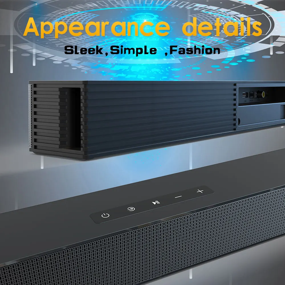 Звуковая панель, проводной и беспроводной динамик для домашнего кинотеатра 40 Вт, Bluetooth-динамик с сабвуфером, поддержка оптического коаксиального кабеля, HDMI