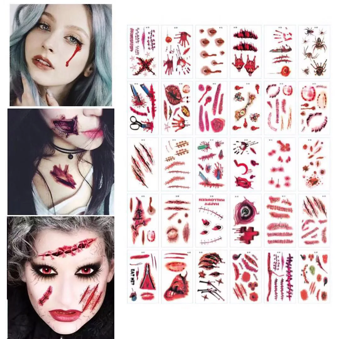 Лицевая наклейка тату для Хэллоуина, 30 шт.лот, татуировки со шрама...