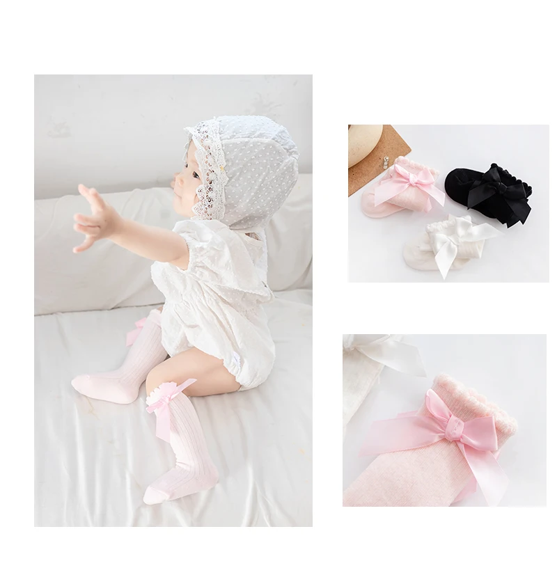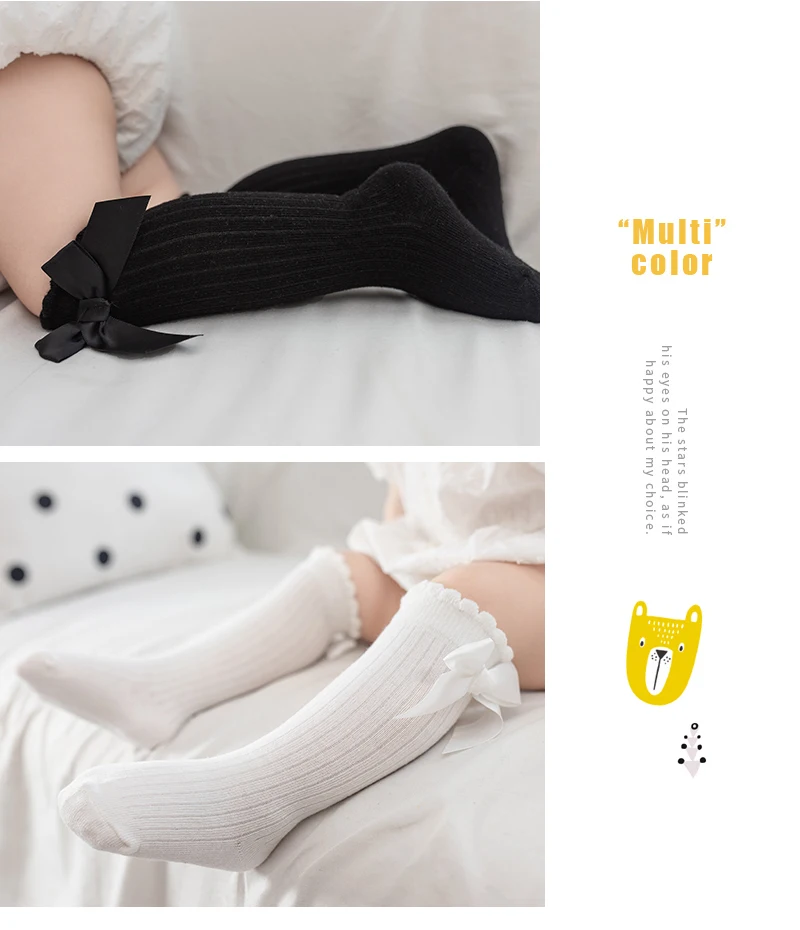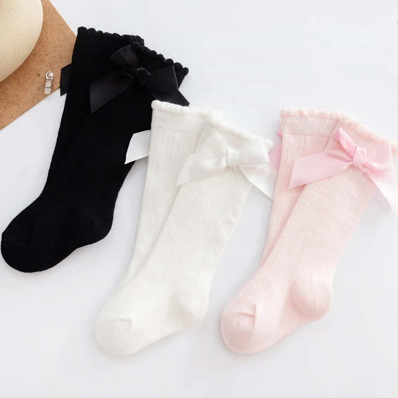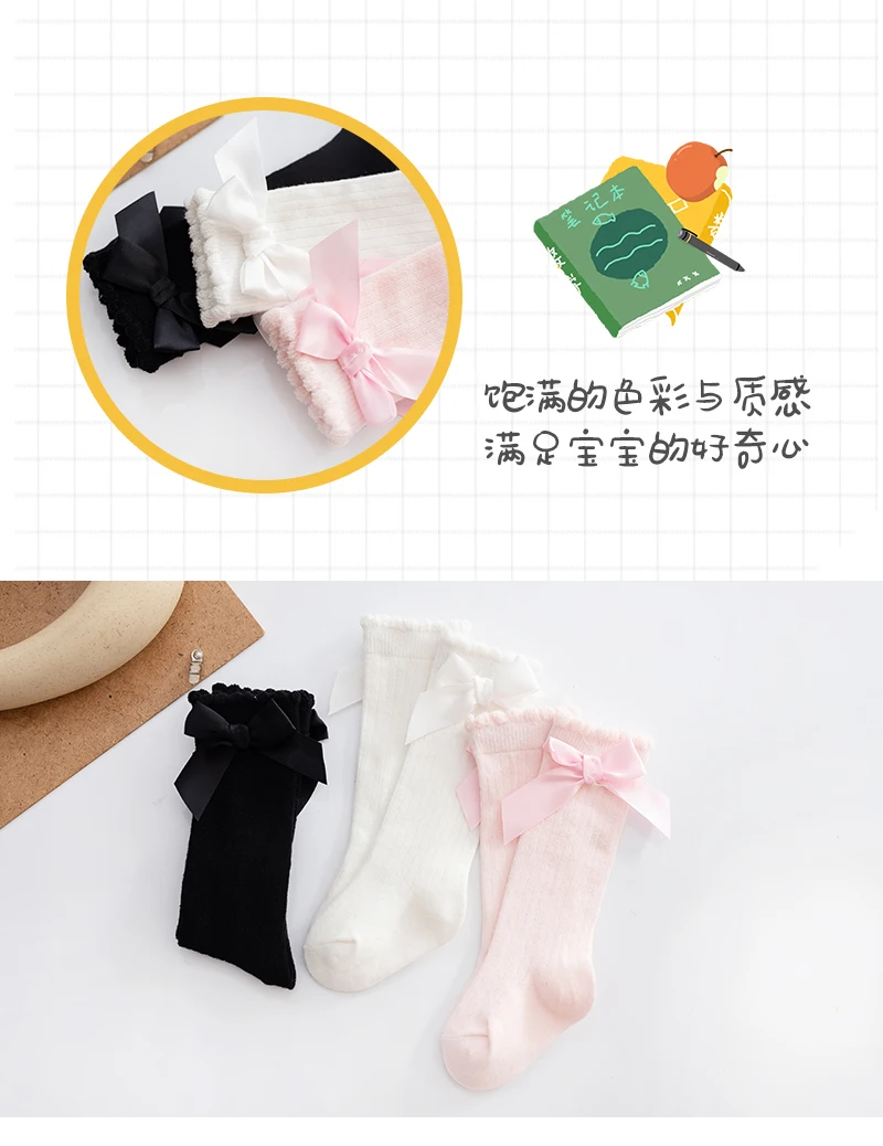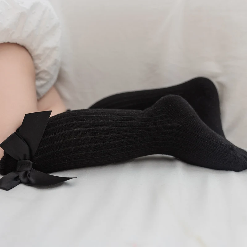 Однотонные противоскользящие вязаные длинные чулки до колена для девочек и мальчиков 0-6 лет