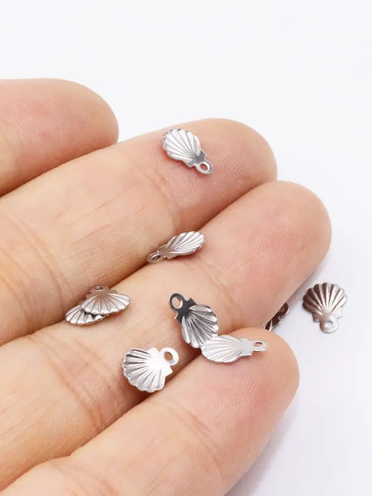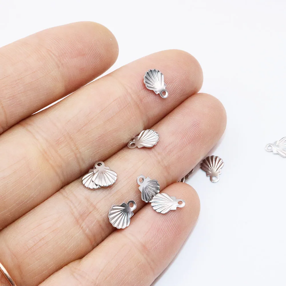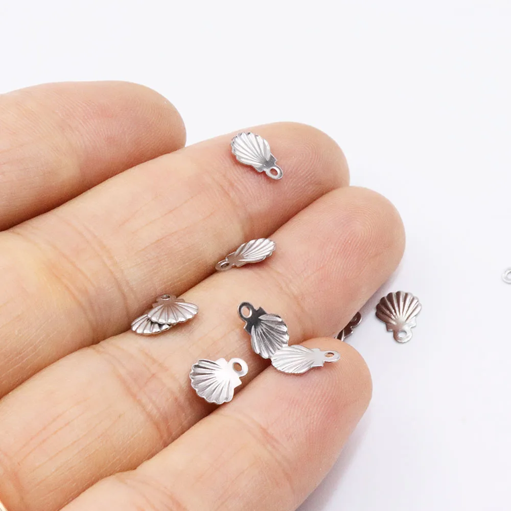 100 шт 6 мм оптовая продажа нержавеющей стали Мини Shell Висячие Подвески DIY Браслеты на ногу, сережки Браслеты неувядающий бесцветный 2 Цвета