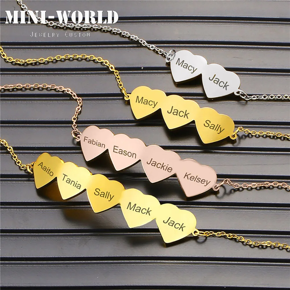 Ожерелье женское из нержавеющей стали с гравировкой имени, 1-6 имена