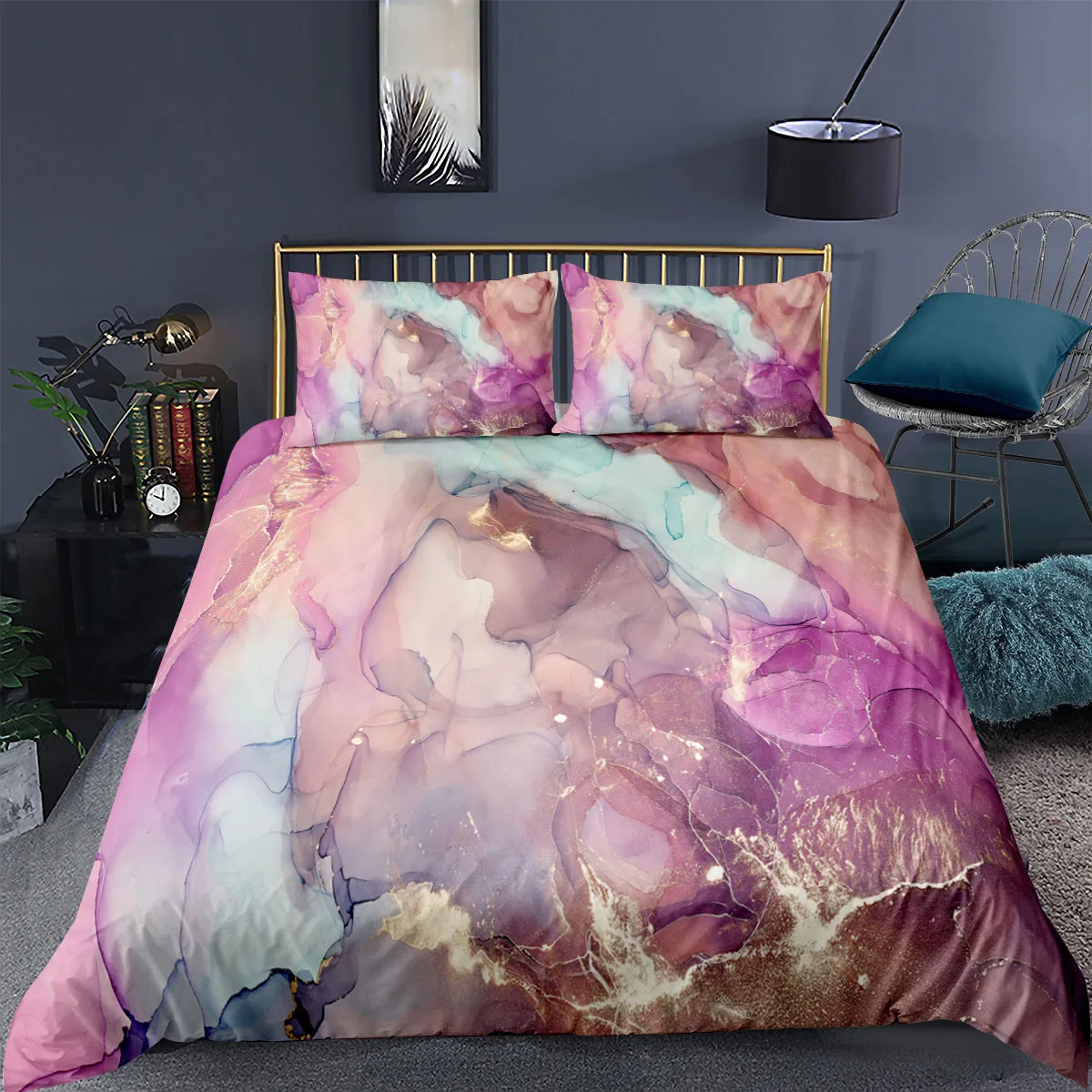 Мраморный пододеяльник, наволочка, искусственная кожа, одинарный, двойной, Королевский роскошный комплект пододеяльников icon star icon star icon star icon star icon star