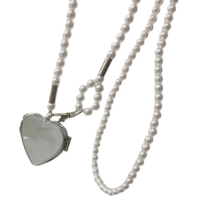 YANGLIUJIA модное индивидуальное длинное женское ожерелье с подвеской в форме сердца и зеркалом 2021 новый стиль жемчужное ожерелье на плечо с кисточкой