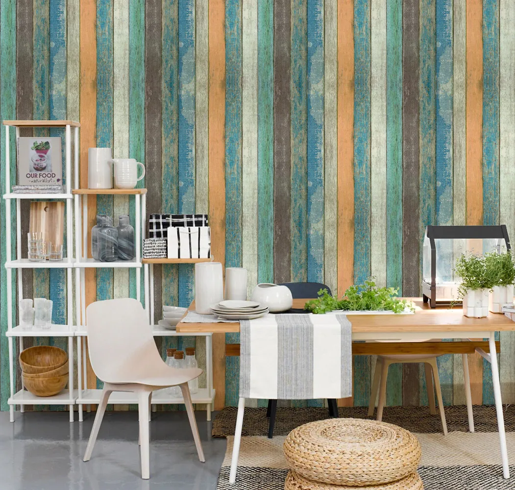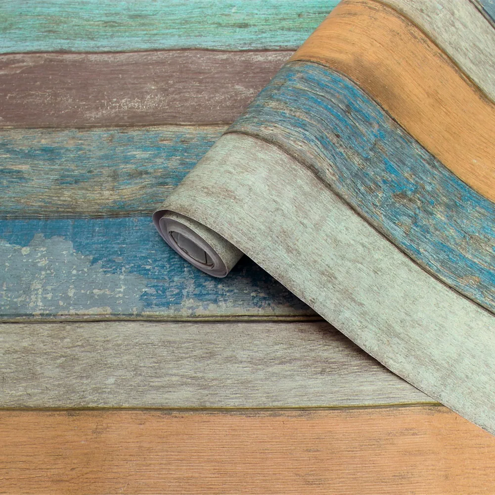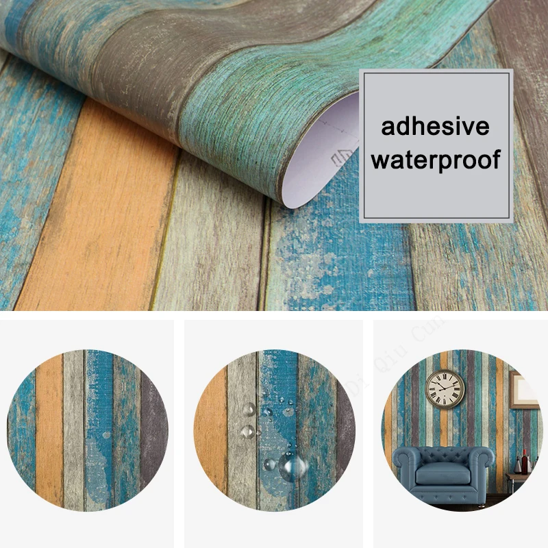 Настенная бумага с деревенскими досками, самоклеящаяся бумага для стен, предварительно наклеенная, синие, зеленые, черные разноцветные полоски из дерева