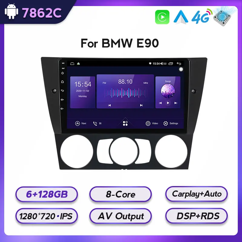Автомобильный радиоприемник 8 ядер 6 + 128G Android11 для BMW E90 2005-2013 GPS, головное устройство 2din с поддержкой Wi-Fi 4G LTE carplay + Авто DSP RDS
