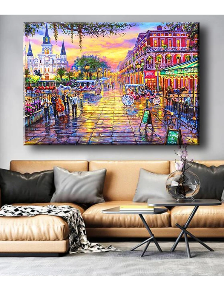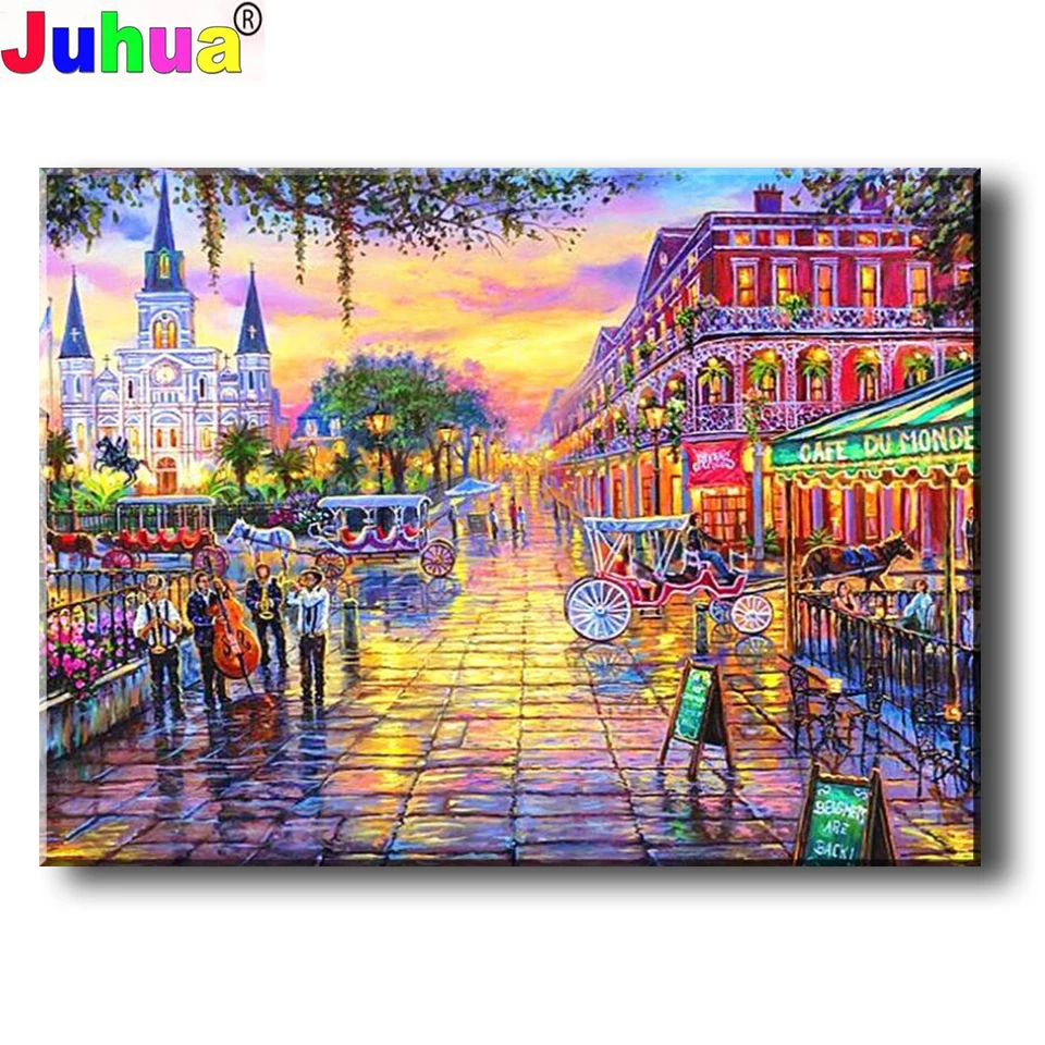 Алмазная вышивка "Парижская улица", квадратныекруглые стразы
