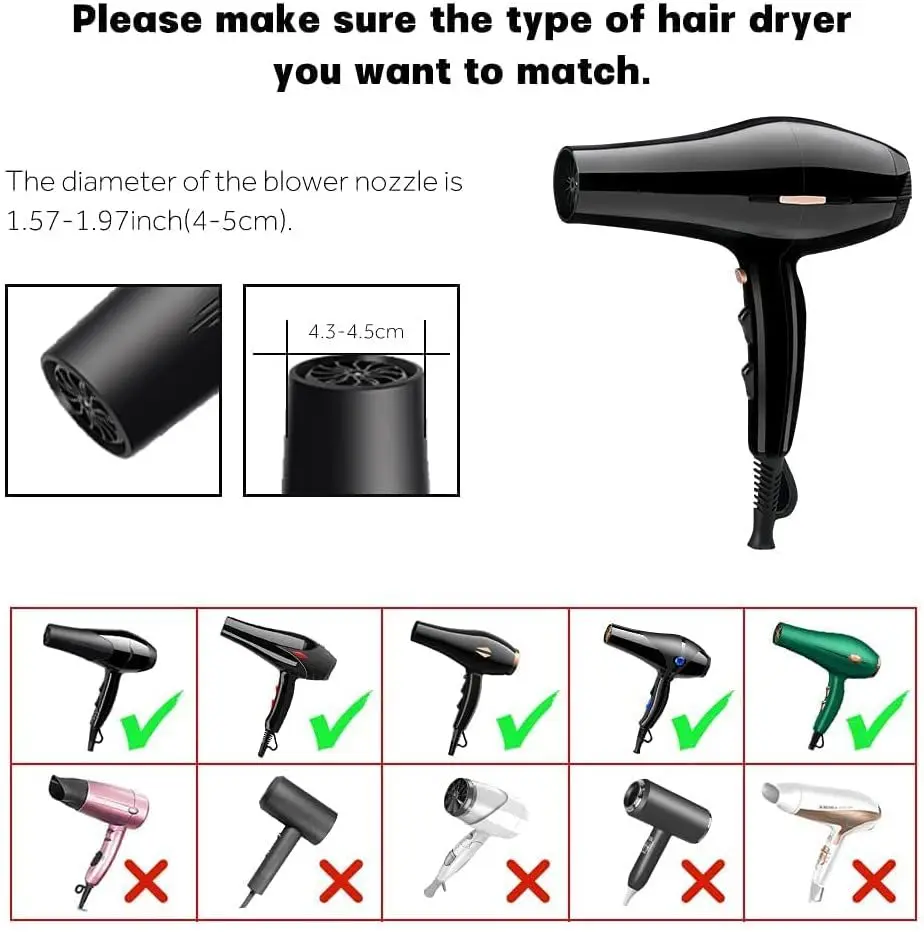 Изготовлен из силиконового материала, без резкого запаха, подходит для укладки вьющихся волос, быстрого высыхания длинных волос и укладки стилистом волос.Калибр этот силиконовый выдвижной воздушный колпак является 4,5 см, которая подходит для Фены В парикмахерских: 4 см-4,5 см. Порт вентилятора должен быть цилиндрическим