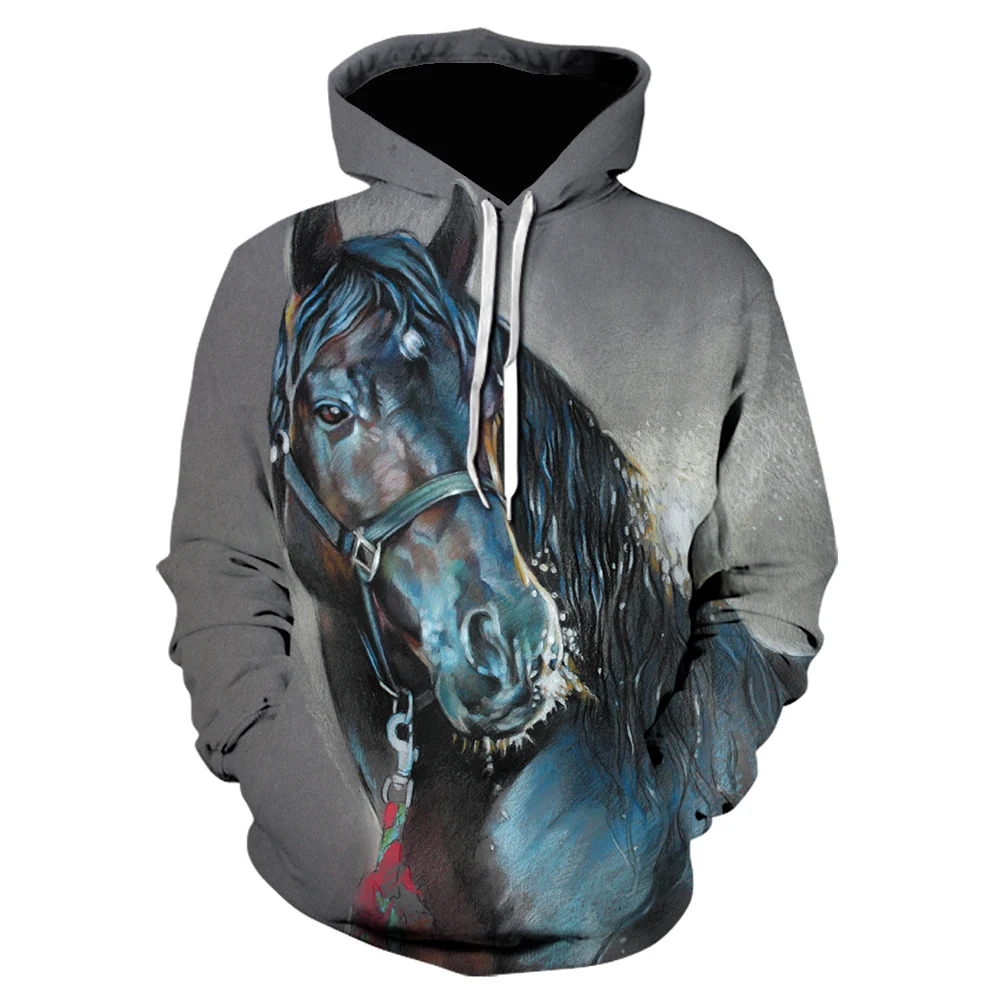 Мужские толстовки с косами и лошадью, свитшот с 3d принтом, мужская...