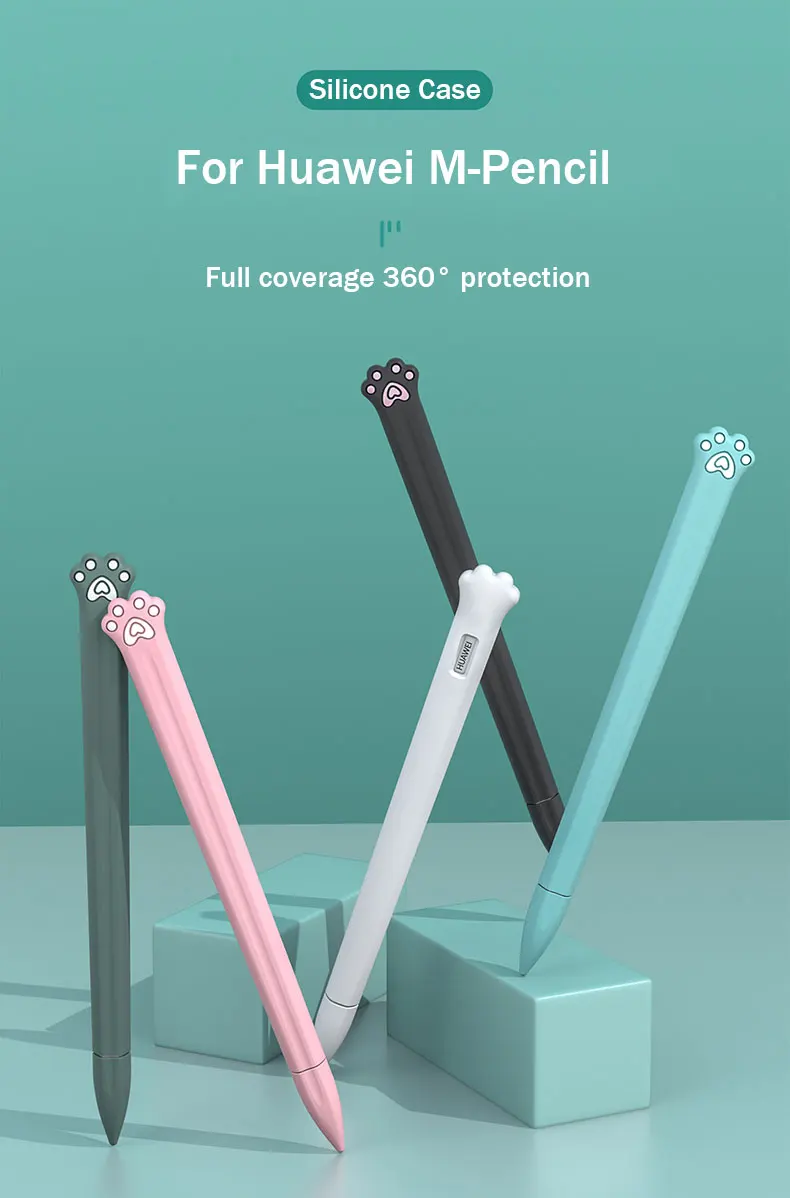 Милые Мультяшные силиконовые чехлы для карандашей для Huawei M-пенал для iPad сенсорный Стилус для планшета защитный чехол с кошачьими лапами