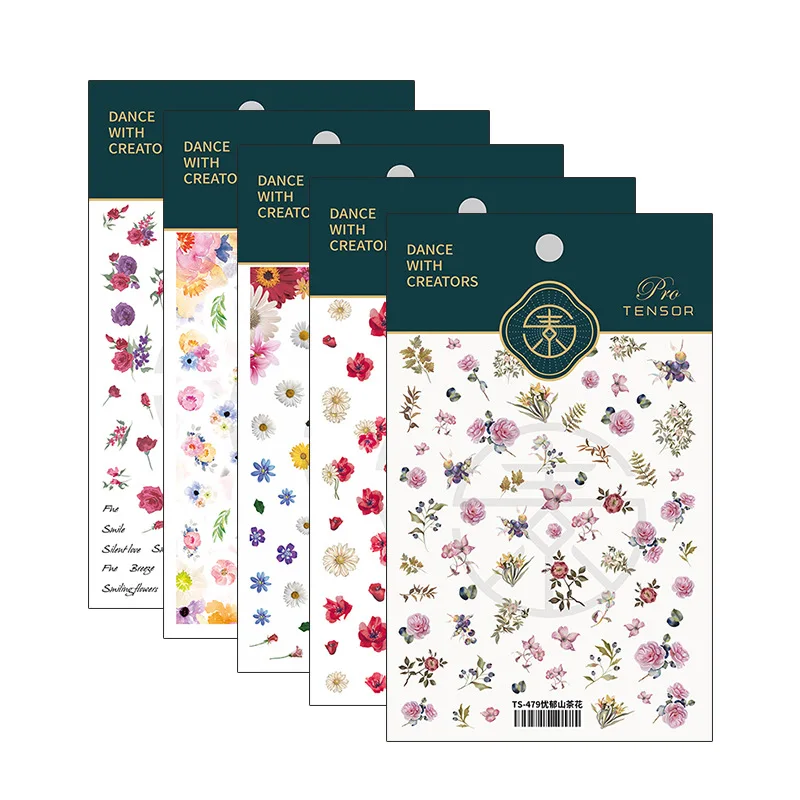 5D супер милые наклейки для ногтей Kawaii, самоклеющиеся цветыбогем...