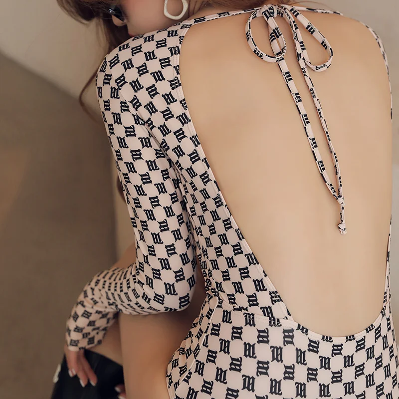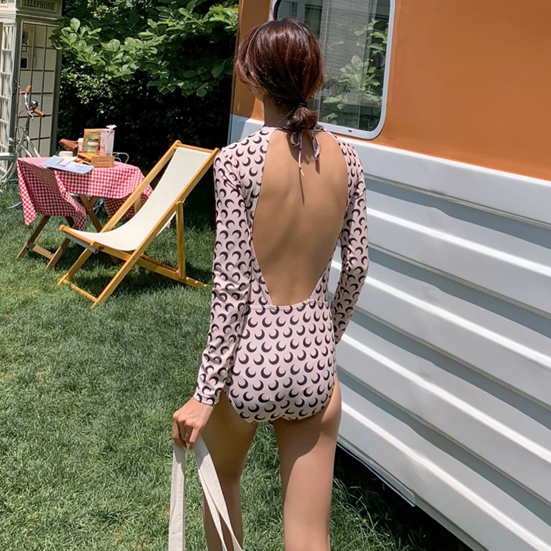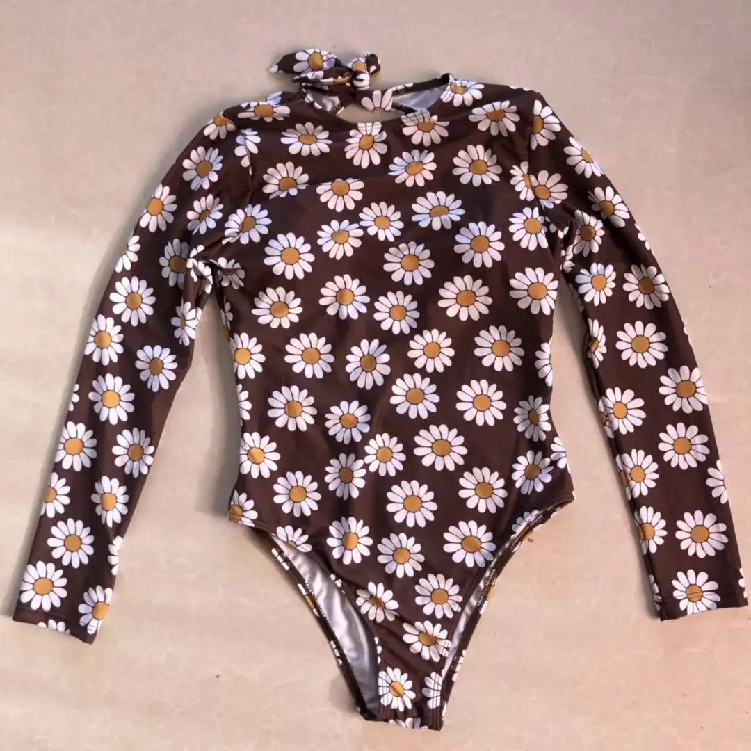 2021 сексуальный купальник с длинным рукавом, Женский Цельный купальник с принтом маргариток, комбинезон с открытой спиной, купальный костюм, пляжная одежда, боди, монокини
