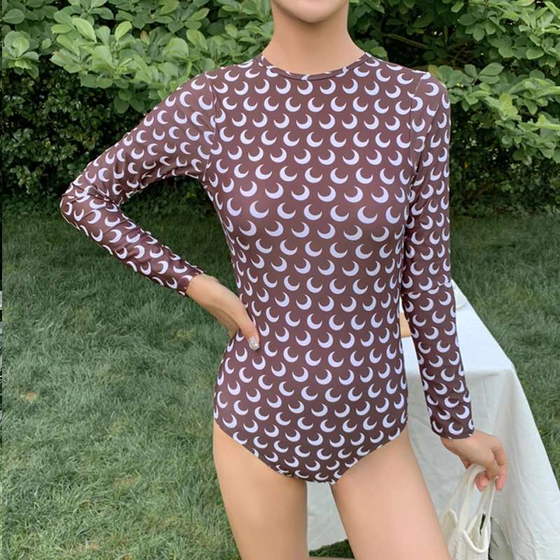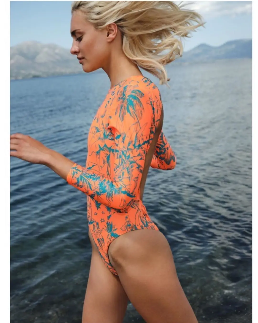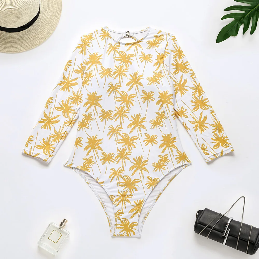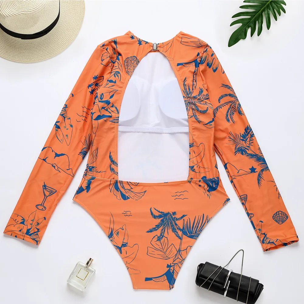 Женский слитный купальник на молнии, с длинным рукавом, с принтом, ...