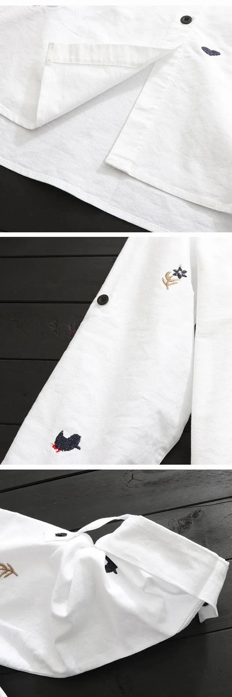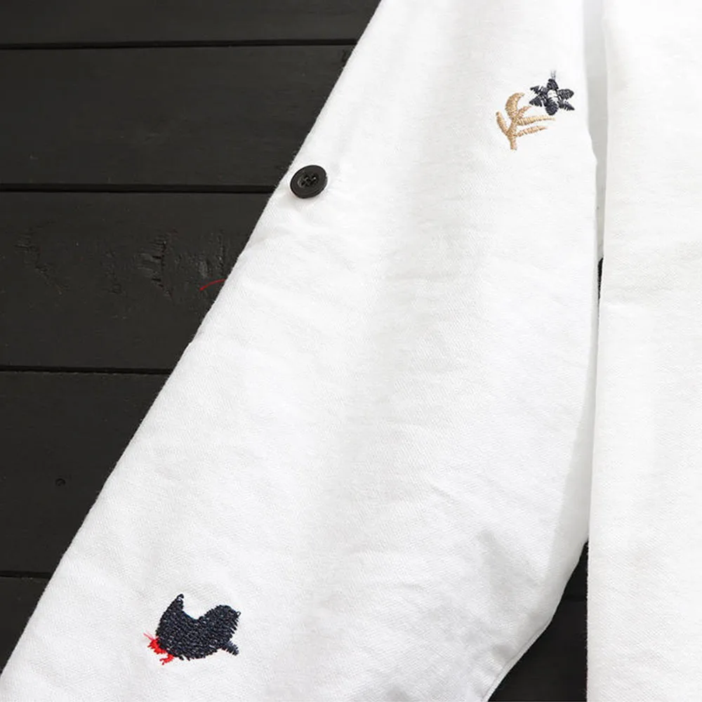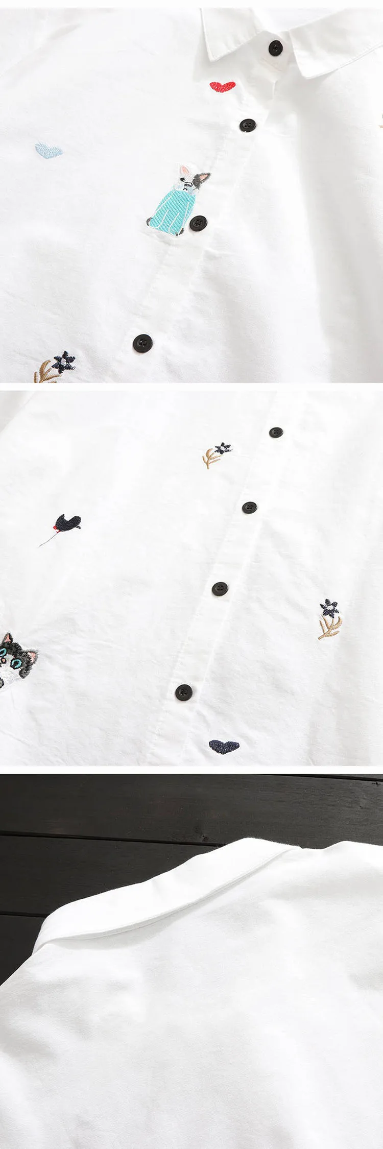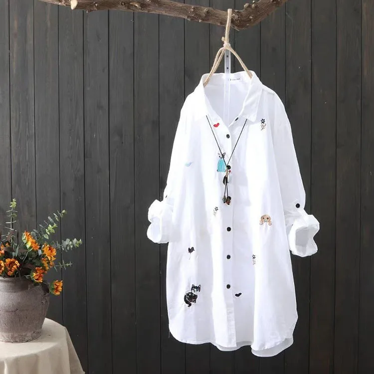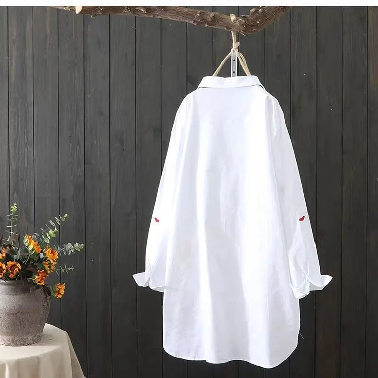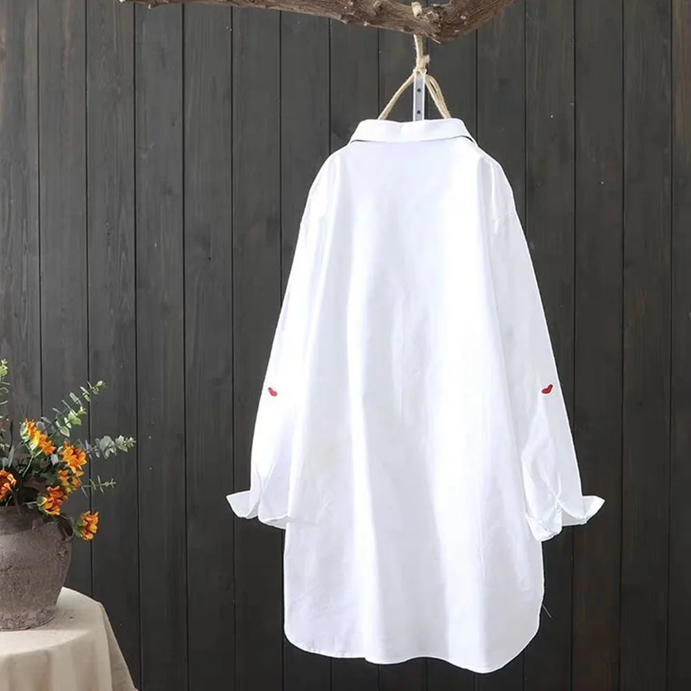 Женская блузка с длинным рукавом, из размера плюс хлопка, с вышивкой, повседневные рубашки на пуговицах, 4XL, 5XL, 100%