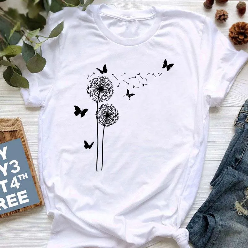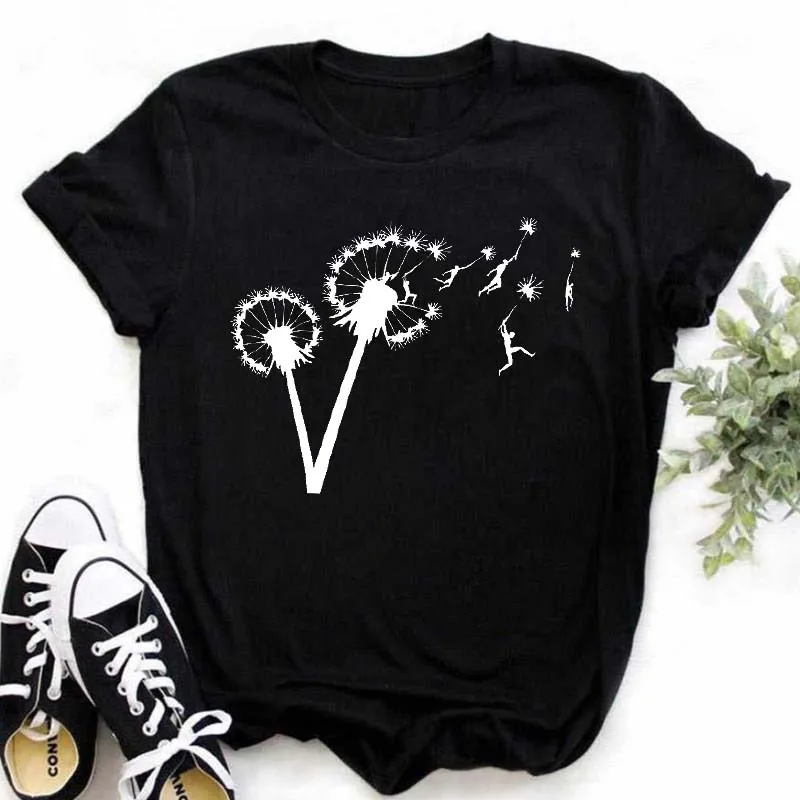 Женские футболки Maycaur с мультяшным рисунком одуванчика, летние женские футболки с коротким рукавом, топы для девочек 90-х, женские футболки, женская футболка